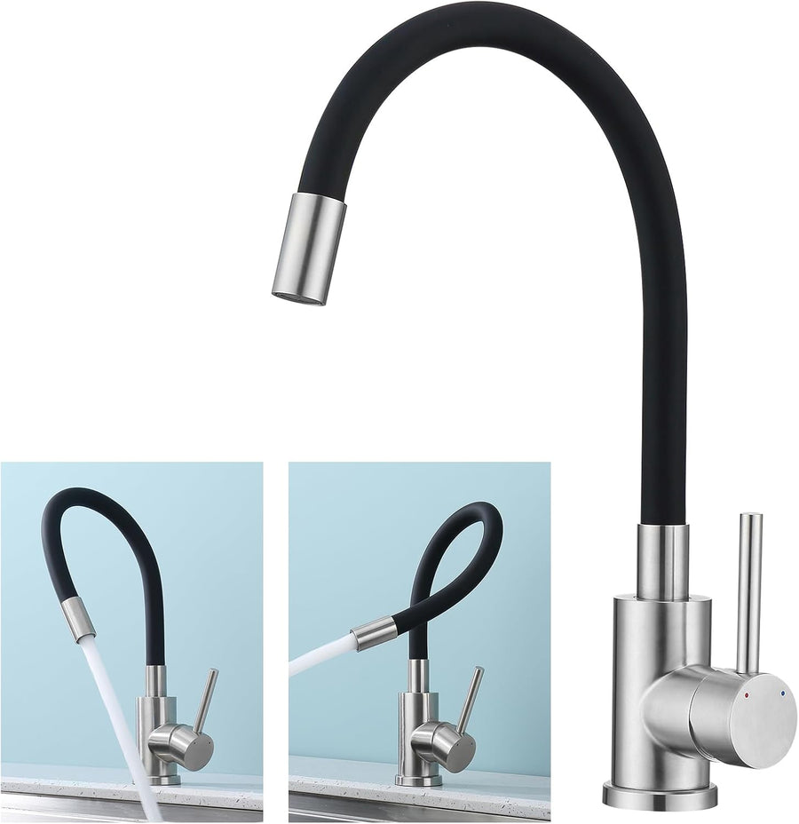 BONADE Wasserhahn Küche Schwarz, Küchenarmatur aus Edelstahl, 360° Schwenkbar Mischbatterie Küche, S