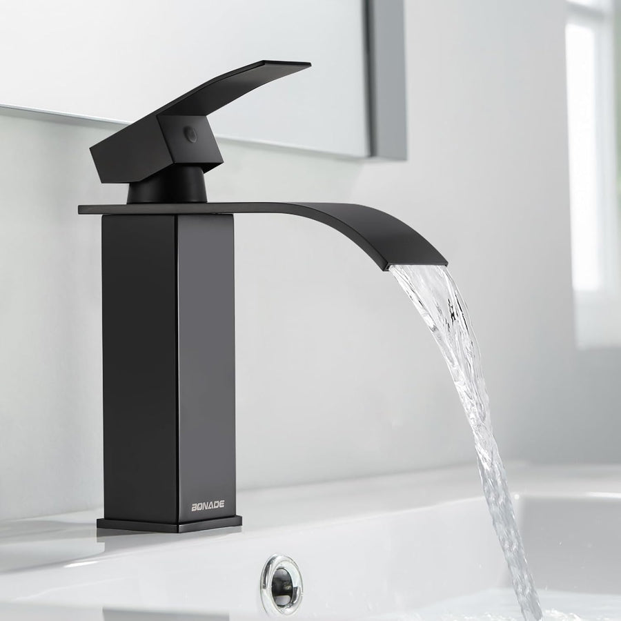 Wasserhahn Bad Schwarz, BONADE Wasserfall Waschtischarmatur aus Edelstahl, Waschbecken Armaturen Kal