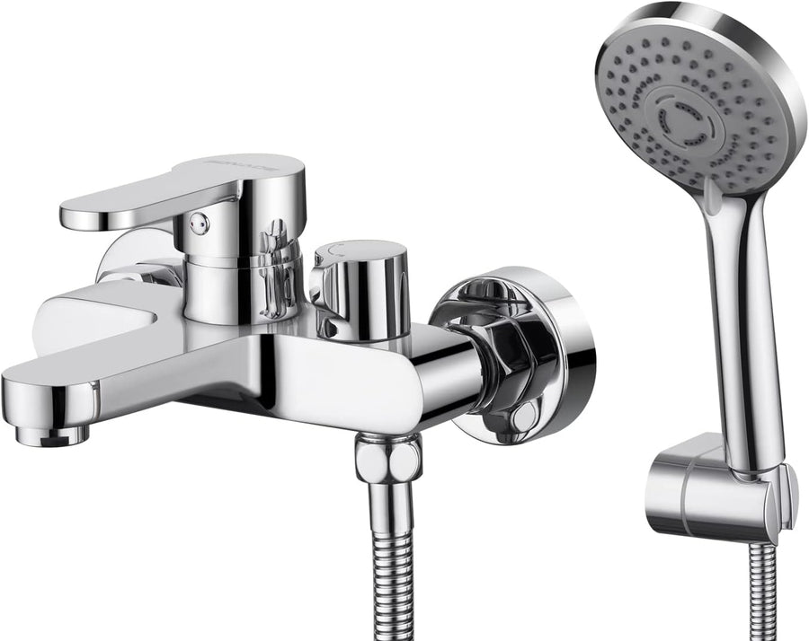 Badewannenarmatur mit Handbrause, Messing Mischbatterie Badewanne mit 5 Funktionen, Aufputz Wannenar