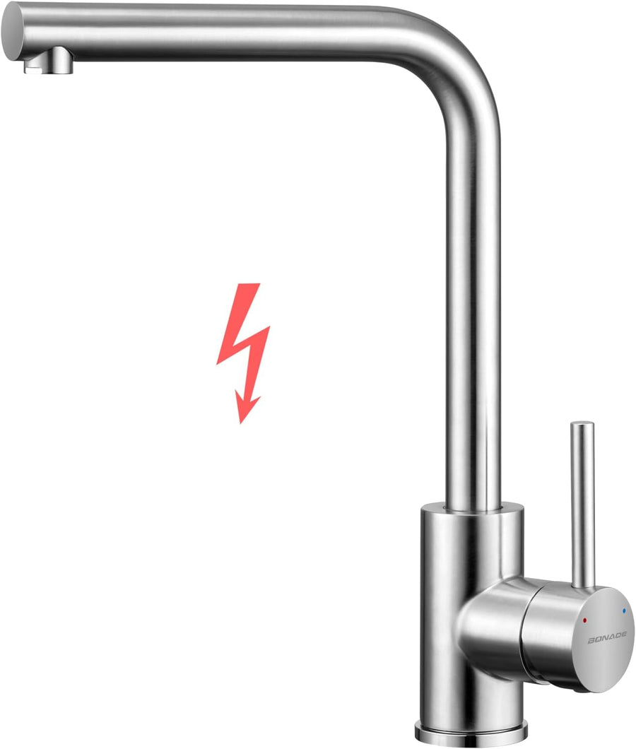 BONADE Niederdruck Armatur Küche aus Edelstahl 304, Küchenarmatur Niederdruck 360° Schwenkbare Misch