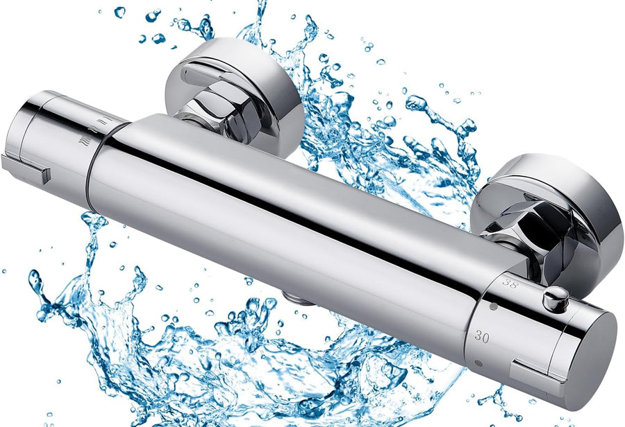 Duscharmatur mit Thermostat, Aufputz Mischbatterie Dusche mit 38°C Sicherheitstaste, Chrom Thermosta