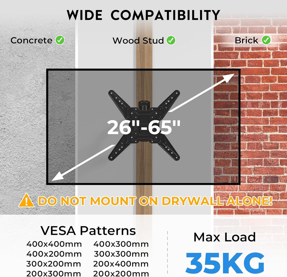 BONTEC TV Wandhalterung für 32-80 Zoll Bildschirme bis zu 60kg, Wandhalterung Fernseher Schwenkbar N