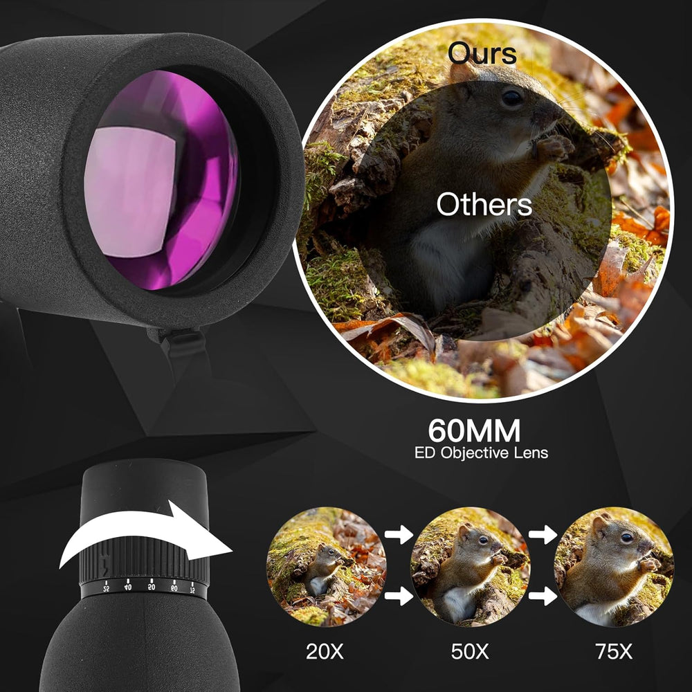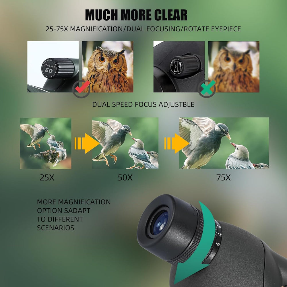 25-75X60 Spektive für Zielschiessen, Jagd, Vogelbeobachtung, Wildtierbeobachtung. Low Light Vision S