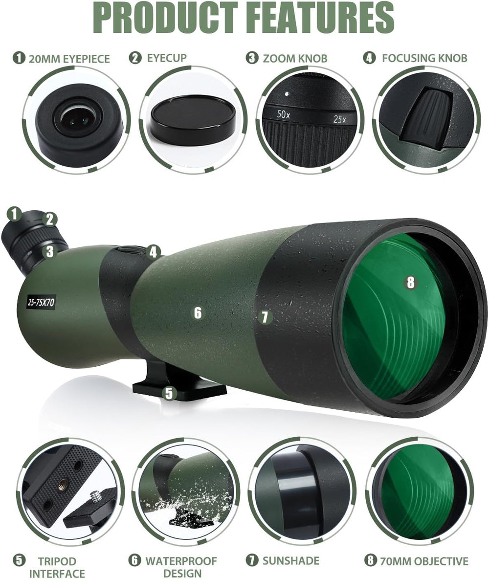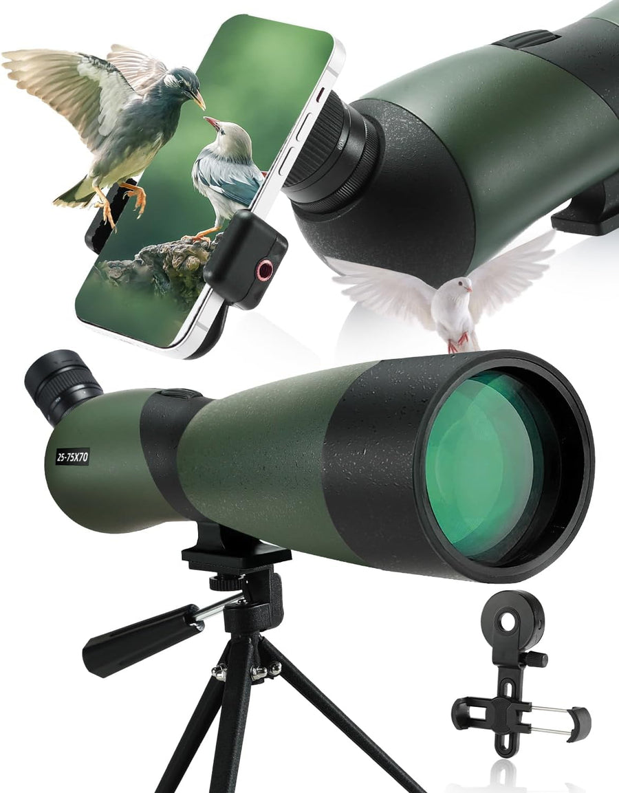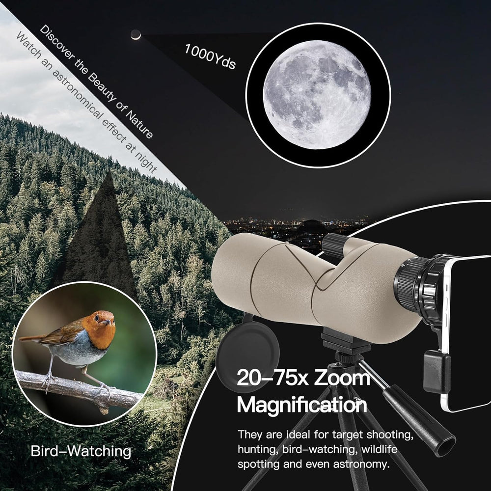 25-75x70mm Spektive mit Stativ, Telefonadapter & Tragetasche, Zoom BAK4 Prisma 45 Grad wasserdichtes