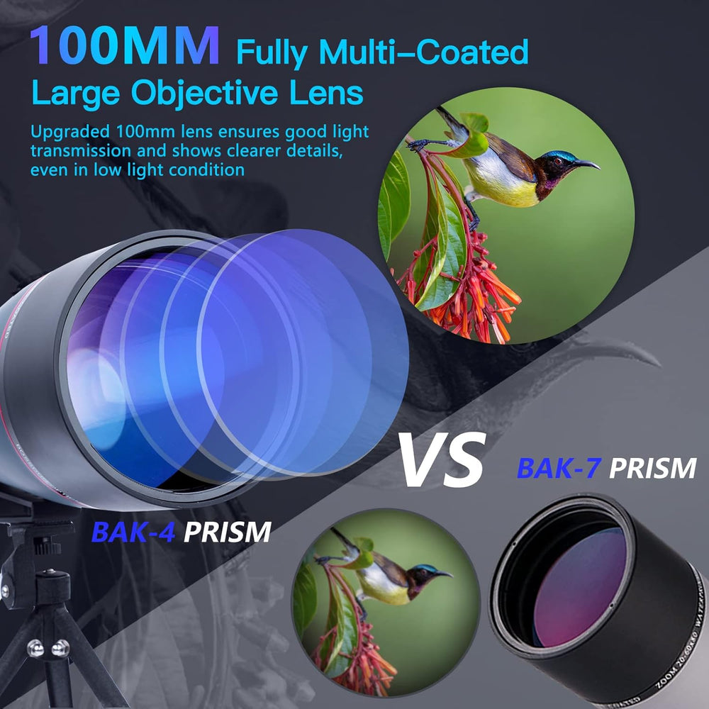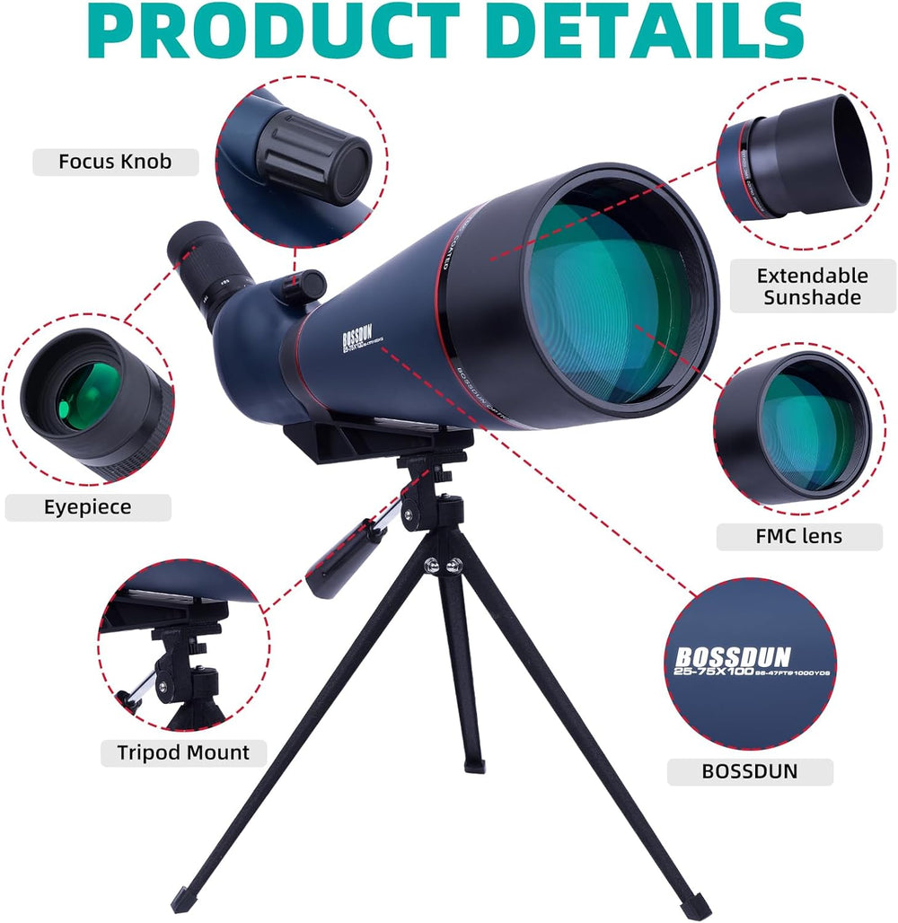 25-75x100 HD Spektiv Sportschützen mit Stativ- und Smartphone-Adapter, Zoom Bak4 Prism FMC Lens 45-G
