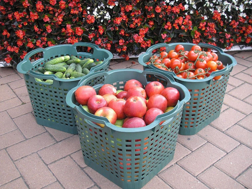 BURI 5x Erntekorb Gartenkorb lebensmittelecht - 25L Kartoffelkorb Obstkorb Laubkorb grün, drehstapel