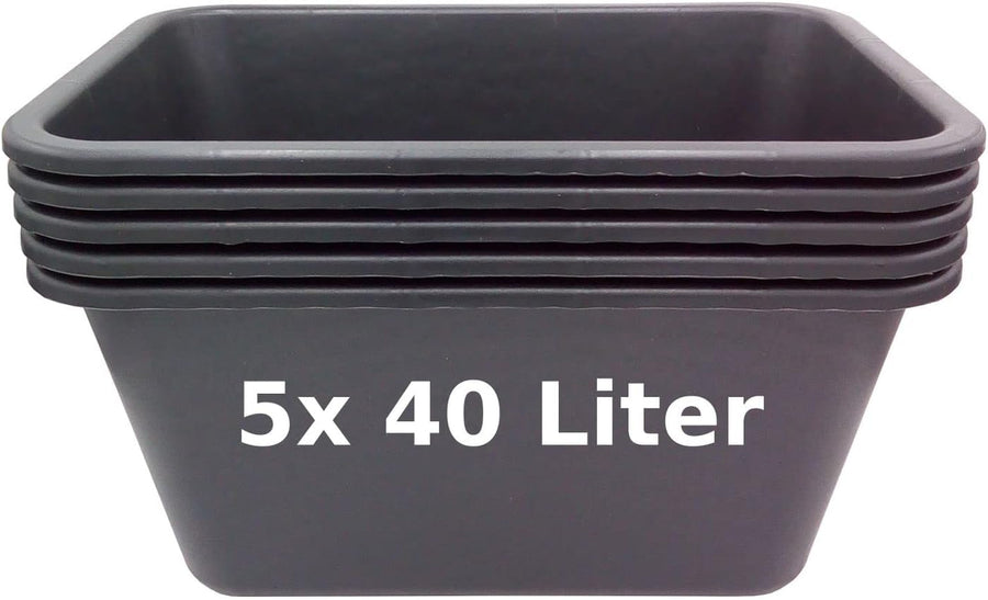 BURI 5 Stück Mörtelwanne 40 Liter Mörtelkasten rechteckig, schwarz - Baueimer Maurerkasten Mörtelküb