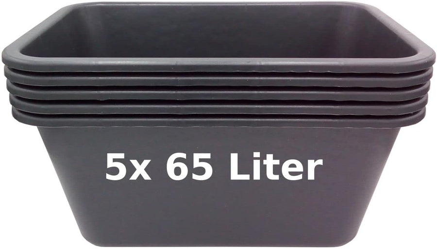 BURI 5 Stück Mörtelwanne 65 Liter Mörtelkasten rechteckig, schwarz - Baueimer Maurerkasten Mörtelküb