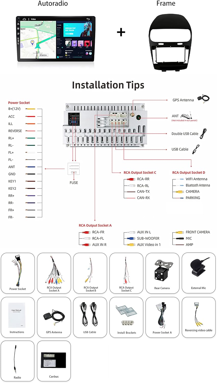 SXAUTO - 6G+128G - Android 12 IPS Autoradio für Citroen C4/C-Quatre/C-Triomphe (2004-2012) - Eingeba