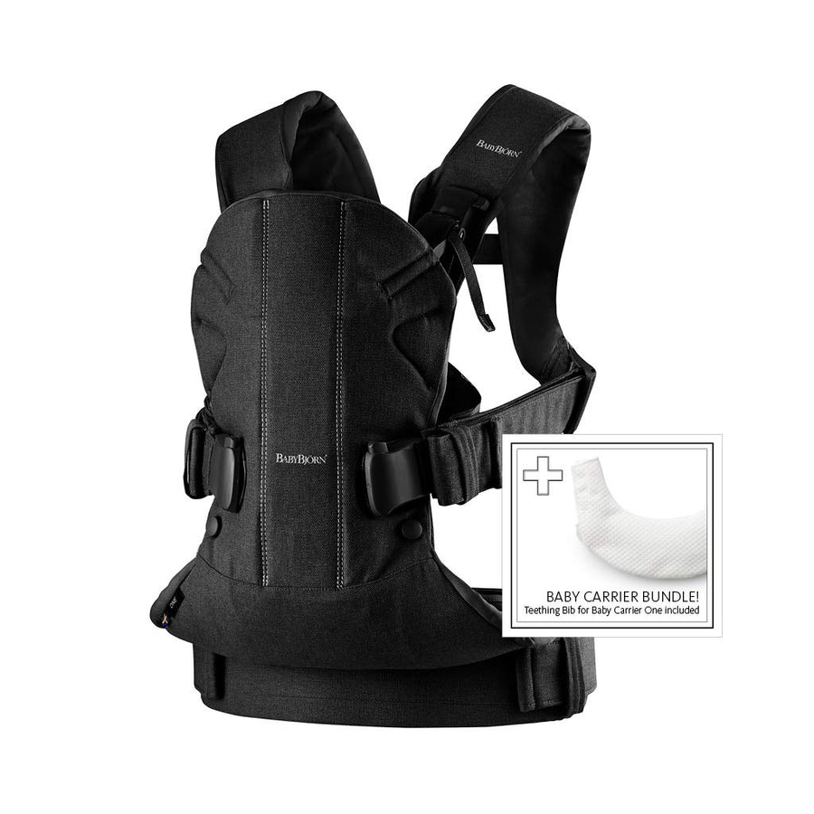 Babybjörn 698001 Babytrage One, Cotton Mix, & Lätzchen weiss, schwarz, 1030 g Baumwolle Mix Schwarz