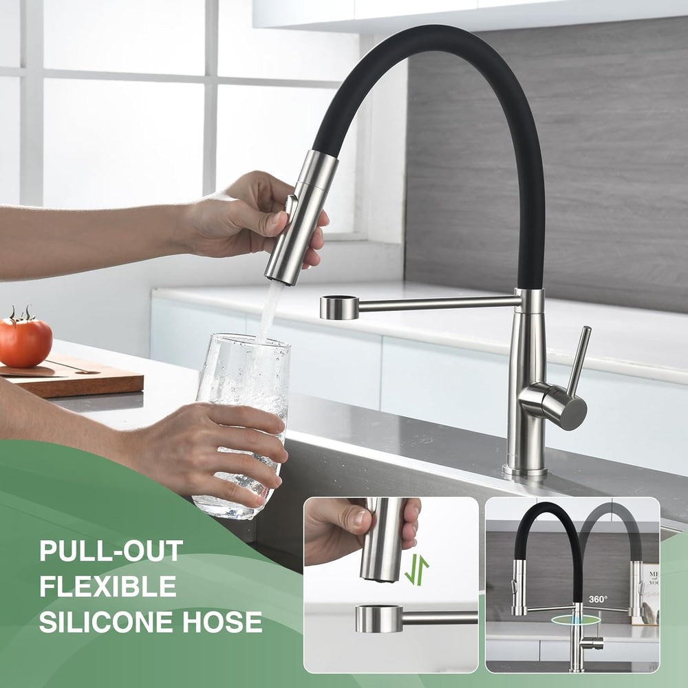 Baollansa Wasserhahn Küche Gebürstet, küchenarmatur mit flexibler auslauf, silikonschlauch armatur k