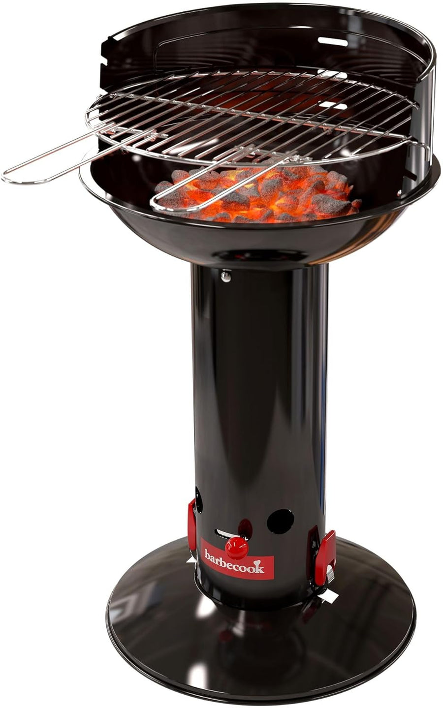 Barbecook Holzkohlegrill BBQ mit Windschutz, Säulengrill rund Standgrill mit Quick-Start und Quick-S