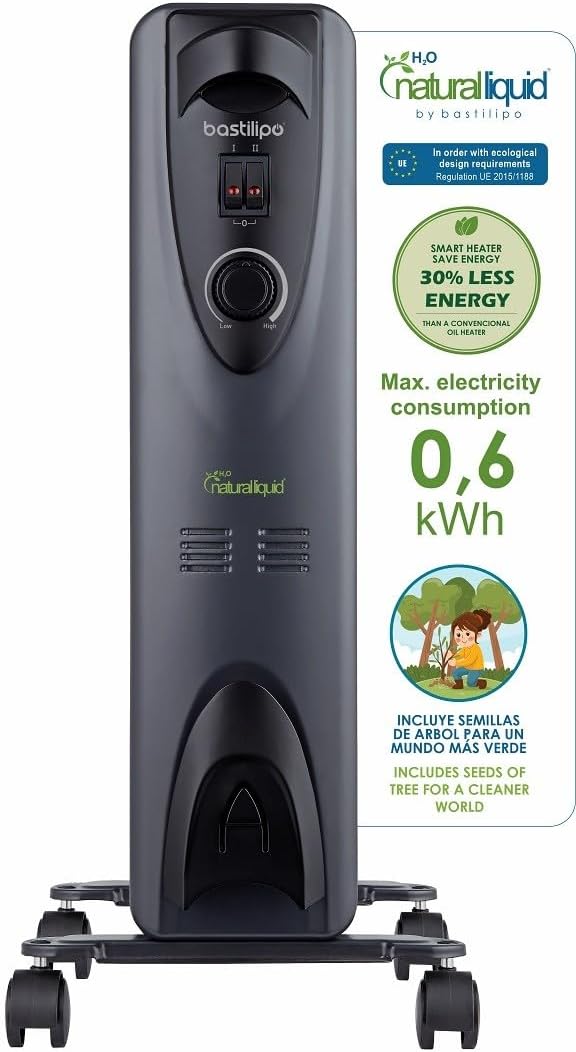 Bastilipo R-Ecofluid2-9 Energiespar-Heizkörper mit integriertem WLAN und 1500 W Leistung - H2o Natur