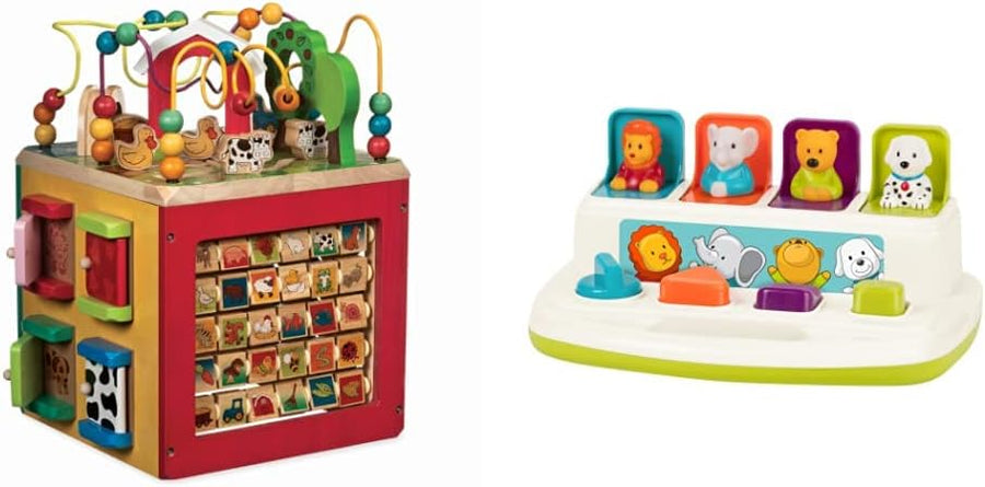 Battat Baby Spielzeug Motorikspielzeug – Pop Up Activity Center mit Tieren – Lernspielzeug mit Taste