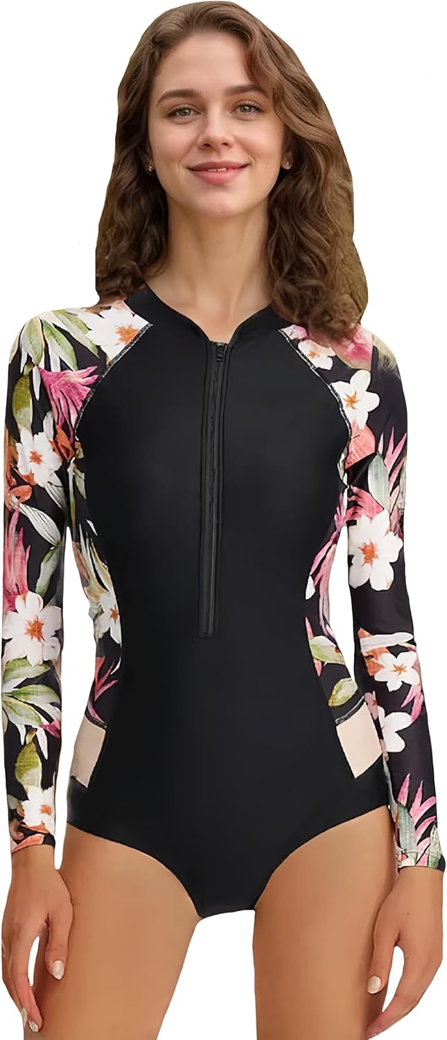 Beachkini One-Piece Swimsuit for Women Long-Sleeved Swimwear with Front Zip Triangle Swimsuit M 51 S