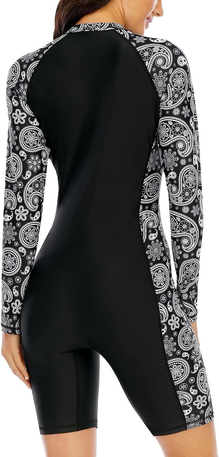 Moderner Atmungsaktiver Damen-Badeanzug mit Langarm,Bedruckte und Einfarbige Badeanzüge für Damen,Fü