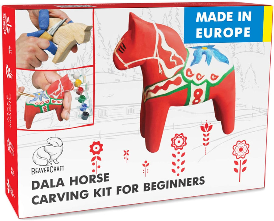 BeaverCraft Schnitz-Kit für Erwachsene und Jugendliche - Holzschnitzset DIY02 Dala Horse - Holzschni