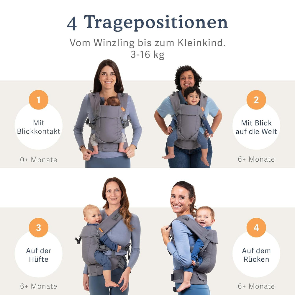 Beco Gemini Babytrage Neugeborene ab Geburt bis Kleinkind - 4 Tragepositionen Baby Trage - Babytrage