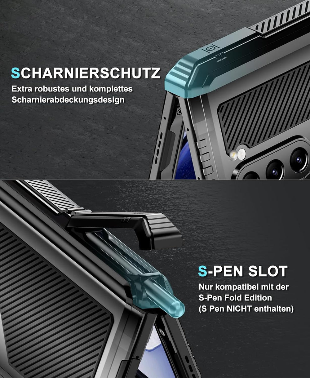 Beeasy für Samsung Galaxy Z Fold 5 Hülle, 360 Grad Outdoor Stossfeste Schutzhülle mit S Pen Halter u