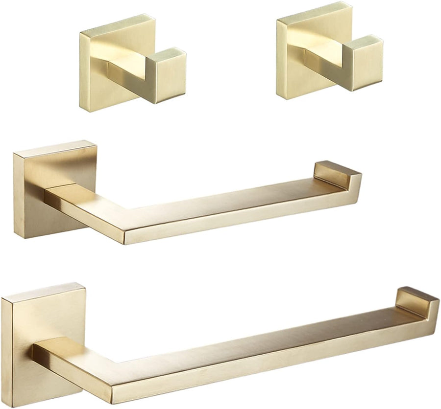 Beelee Badezimmer-Zubehör-Set Gold Hardware Set – Handtuchhalter + Toilettenpapierhalter + 2 Handtuc