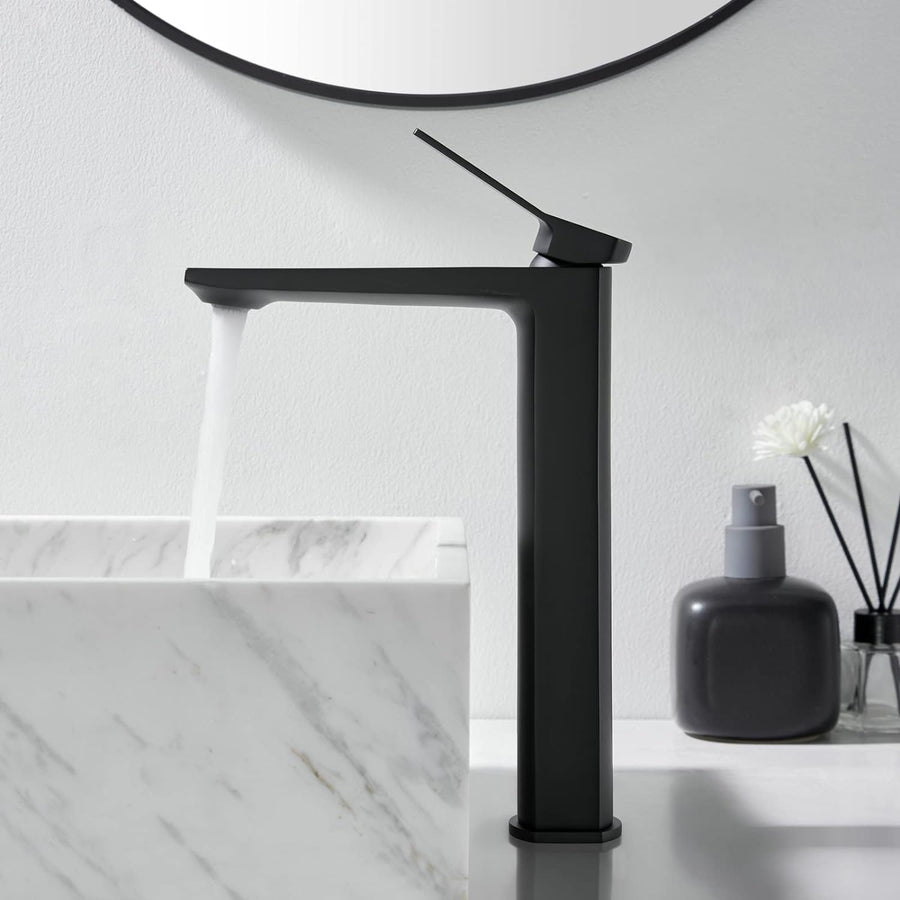 Badezimmer Waschbecken Wasserhahn Matt Schwarz Hoher Wasserhahn für Schiff Waschbecken, Einzelgriff