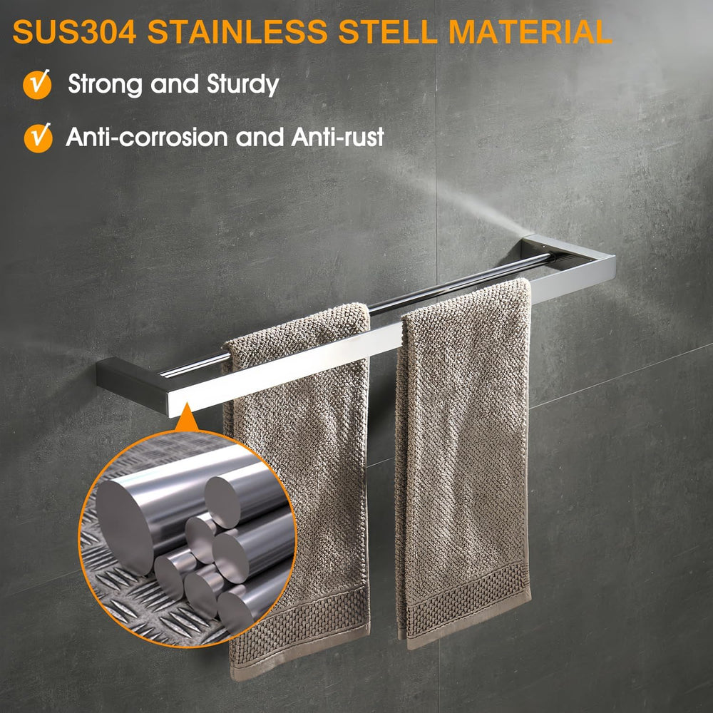 Beelee Badezimmer Toilette Doppelte 40cm Handtuchstange Wandhalterung, Edelstahl - Edelstahl, Polier