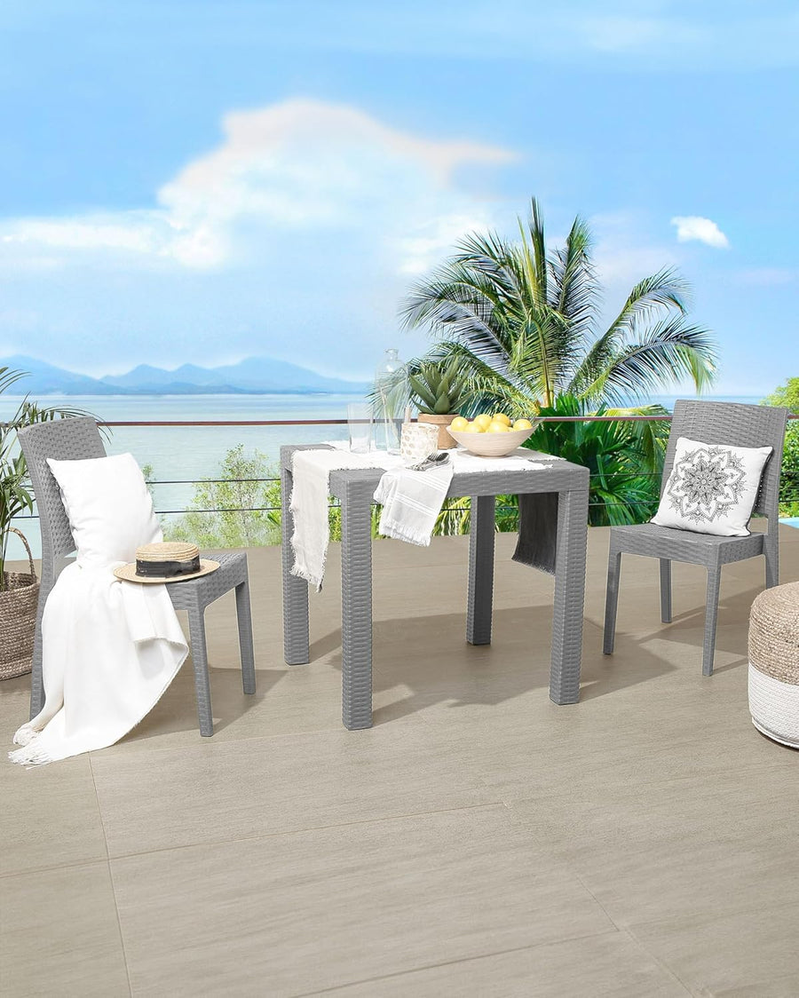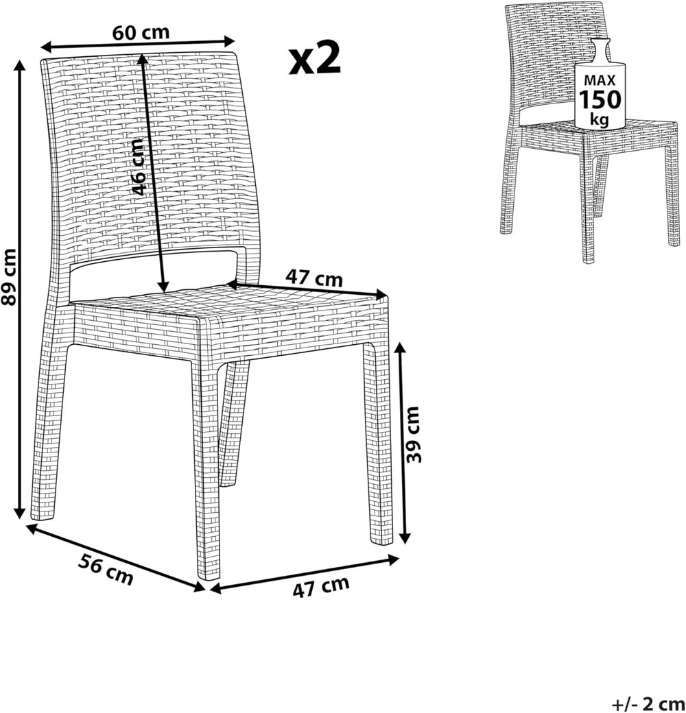 Beliani Gartenstühle im 2er Set Rattanoptik hellgrau Fossano