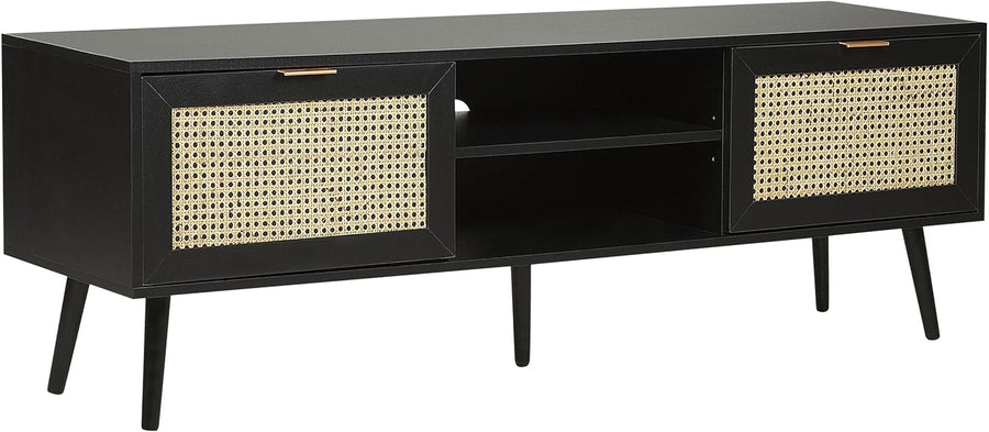 Beliani TV-Schrank Rattan schwarz/beige 2 Türen 150 x 40 x 52 cm modern Opoco