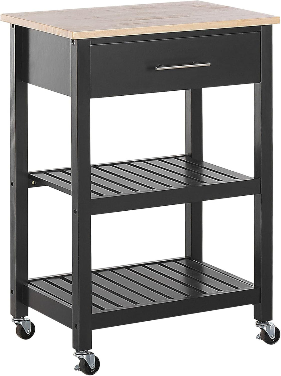 Beliani Multifunktioneller Servierwagen schwarz 2 Fächer 1 Schublade Hiuma