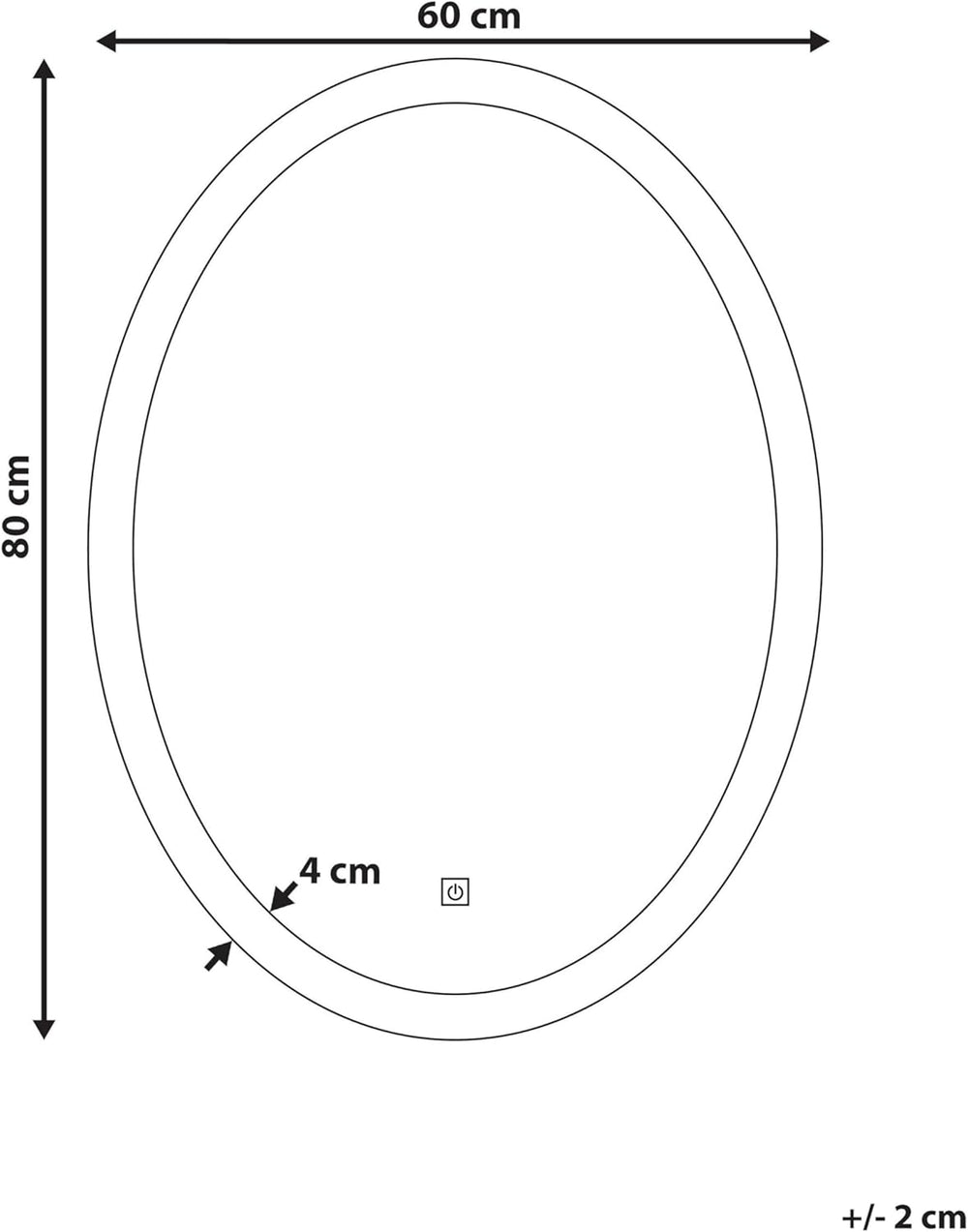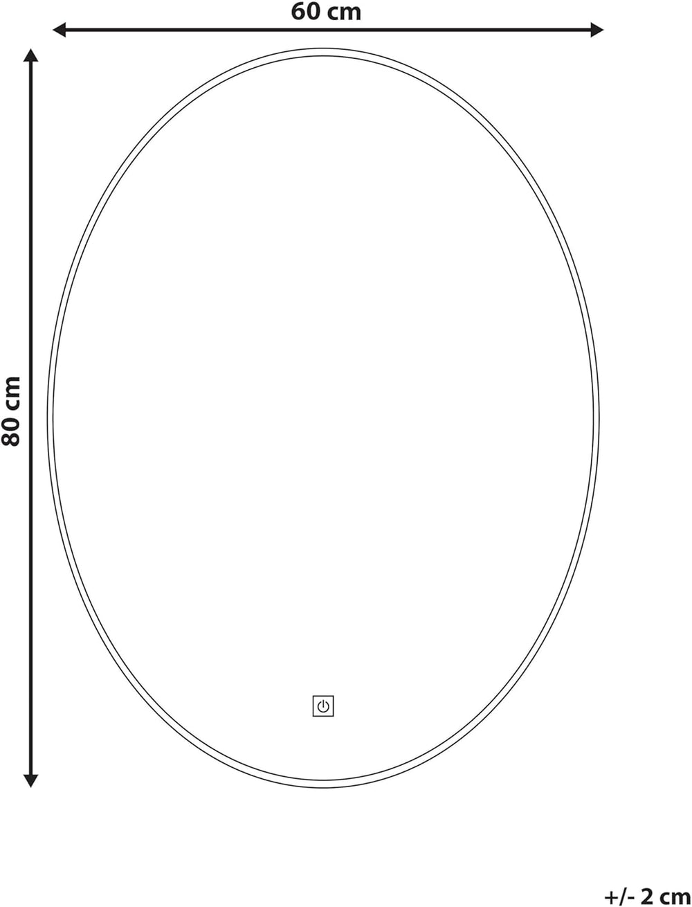 Beliani Badspiegel oval Silber 80 x 60 cm mit Antibeschlagsystem LED-Beleuchtung