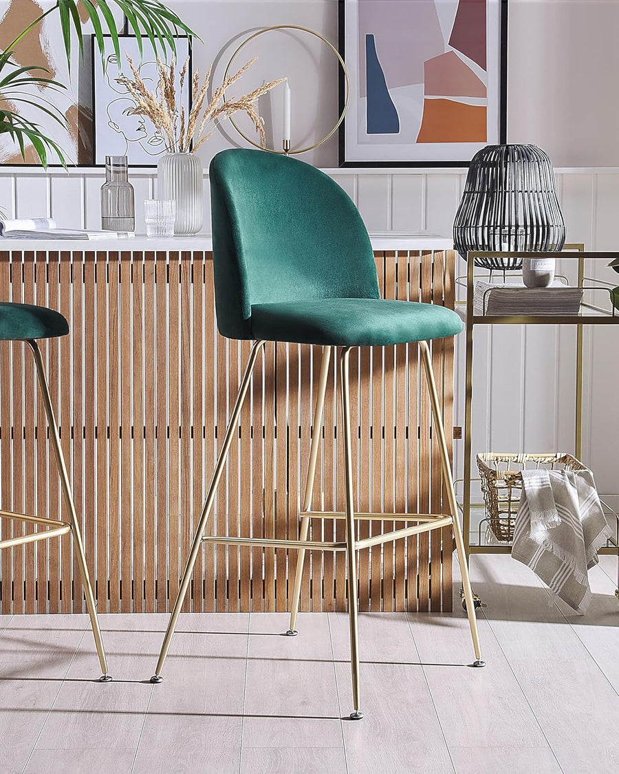 Bequemes Barstuhl Set 2 Stücke mit Samtbezug grün/gold Arcola