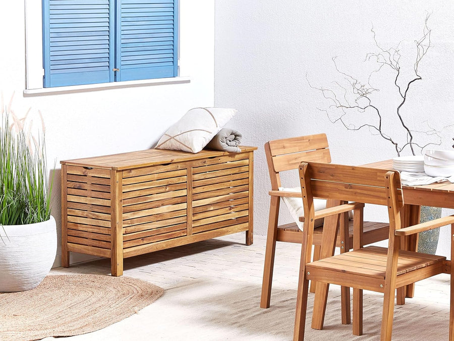 Auflagenbox Akazienholz Truhe geölte Oberfläche hellbraun 130x64x48 cm Riviera