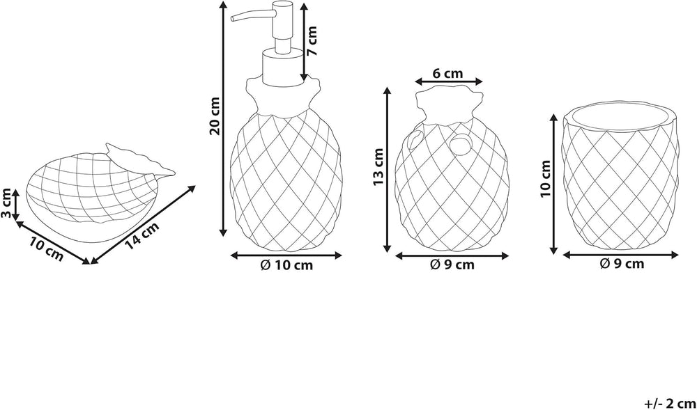 Badezimmer Set gelb 4-teilig aus Naturstein Dolomit Ananasmotiv Maicao