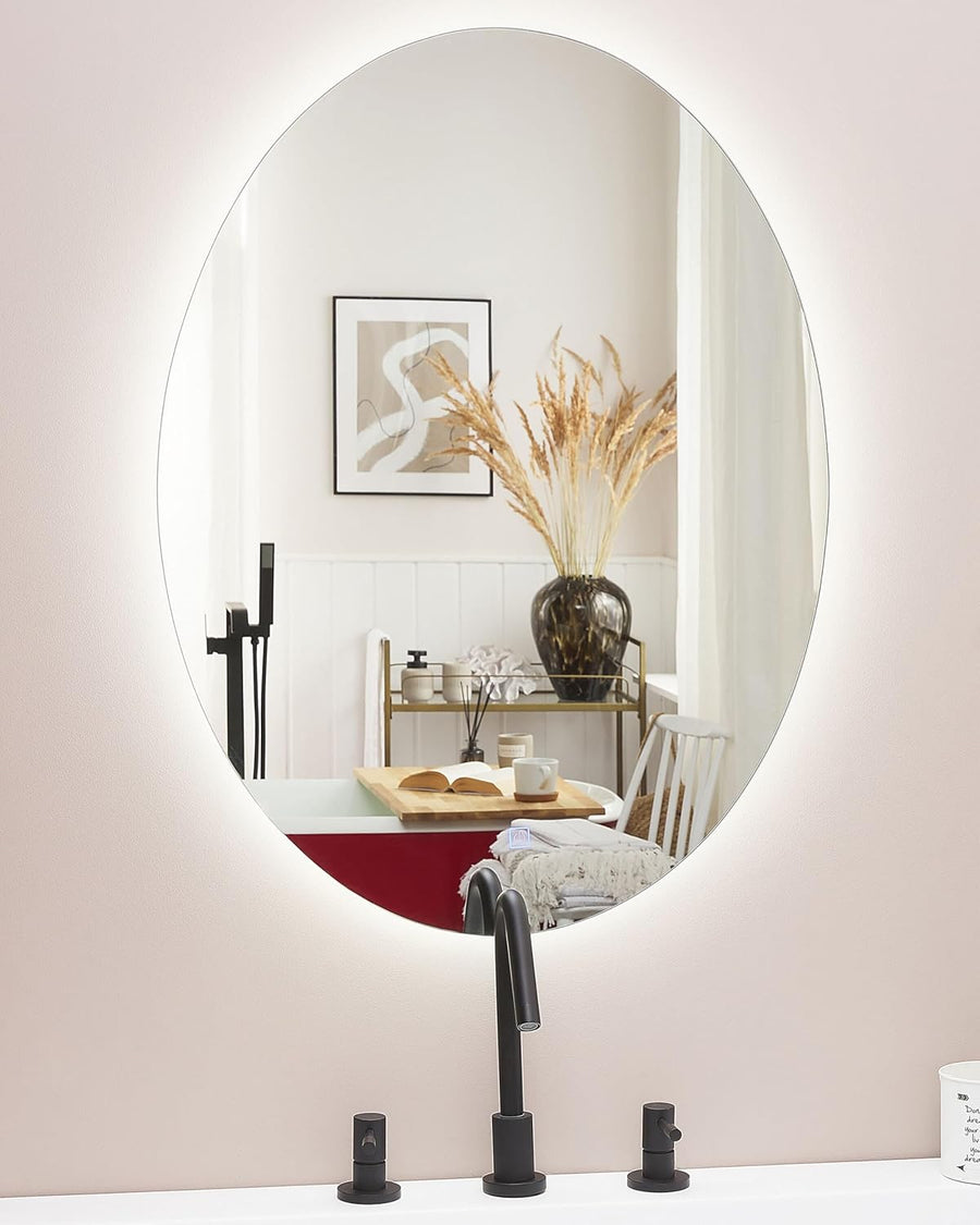 Badspiegel LED-Beleuchtung oval silber 80x60 cm mit Antibeschlagsystem Mazille
