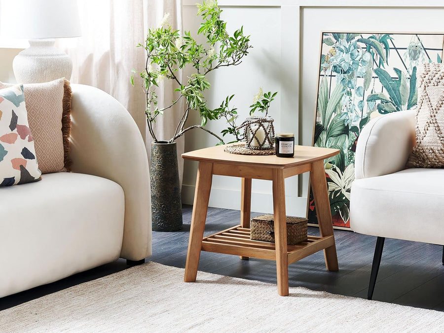 Beistelltisch mit Ablage Lamellen-Optik quadratisch heller Holzfarbton Tulare