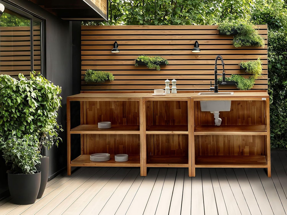 Beliani Outdoor-Kücheninsel zertifiziertes Holz braun schmal 50x50 cm mit Regalen Ivrea