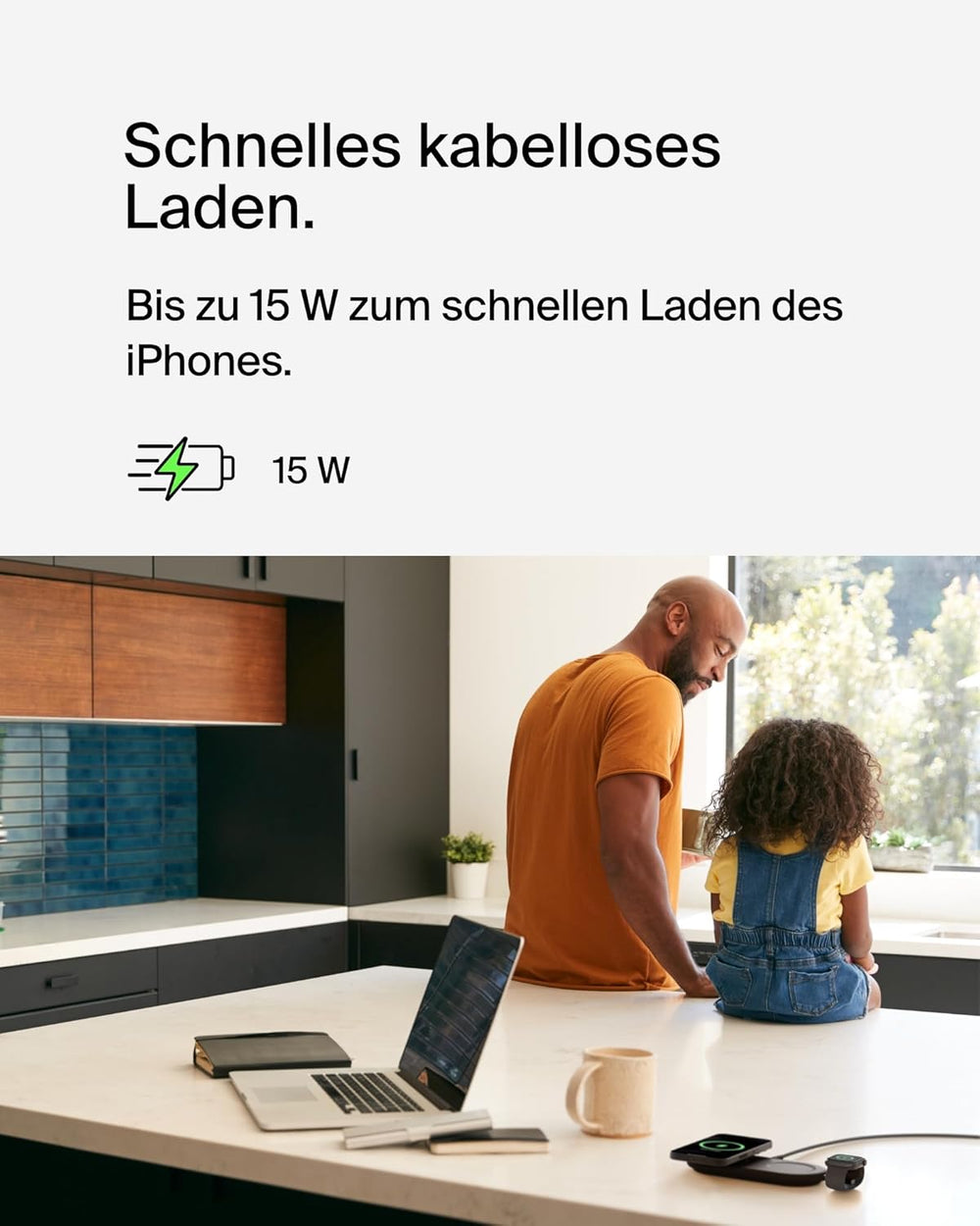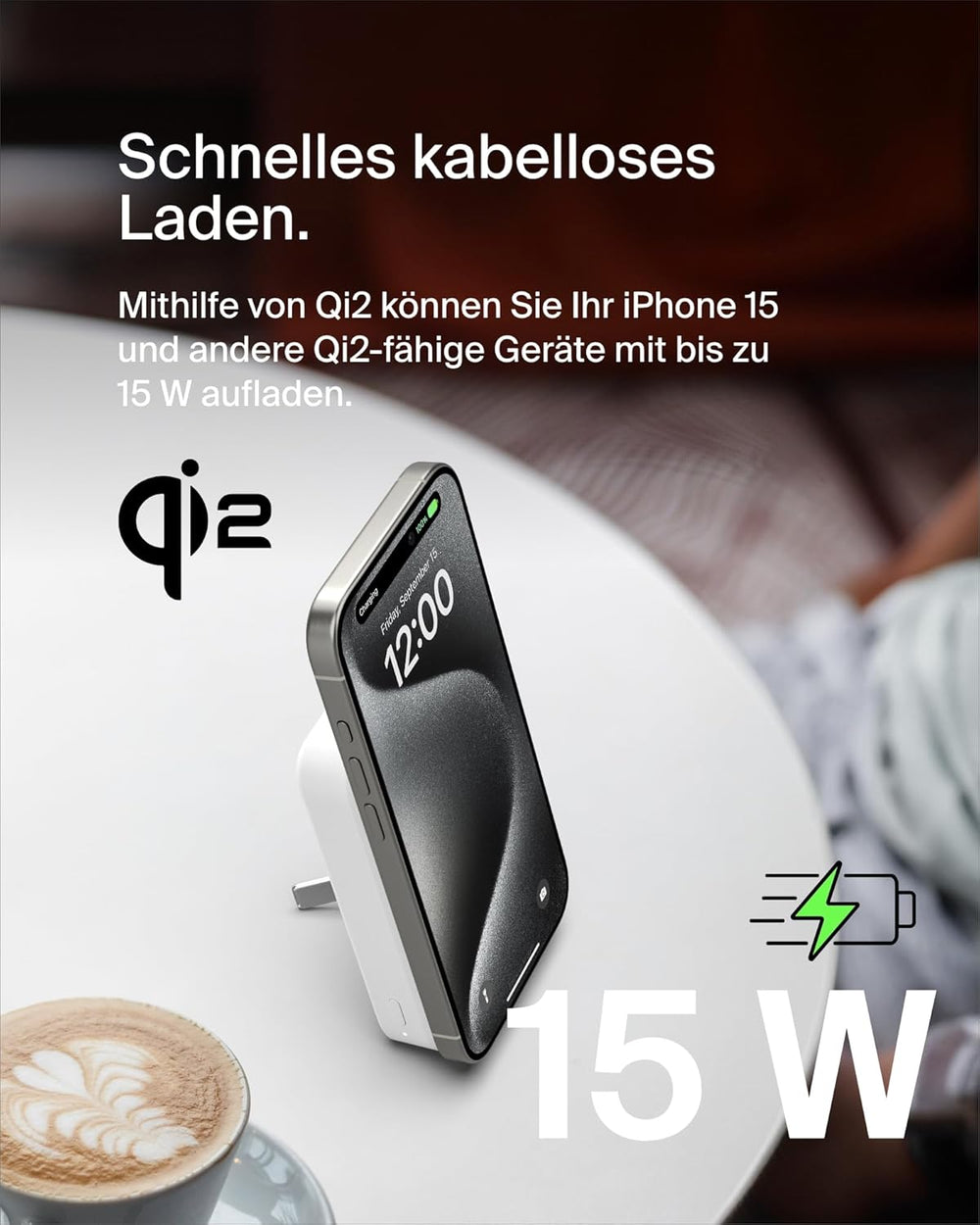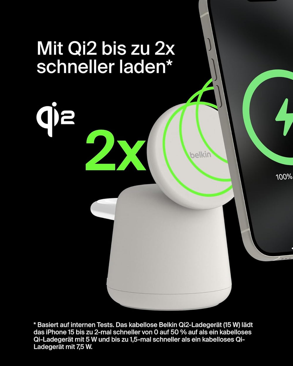 Belkin BoostCharge Pro induktive Ladestation 15W, Qi2-Ladegerät, kabelloses Ladegerät, kompatibel mi