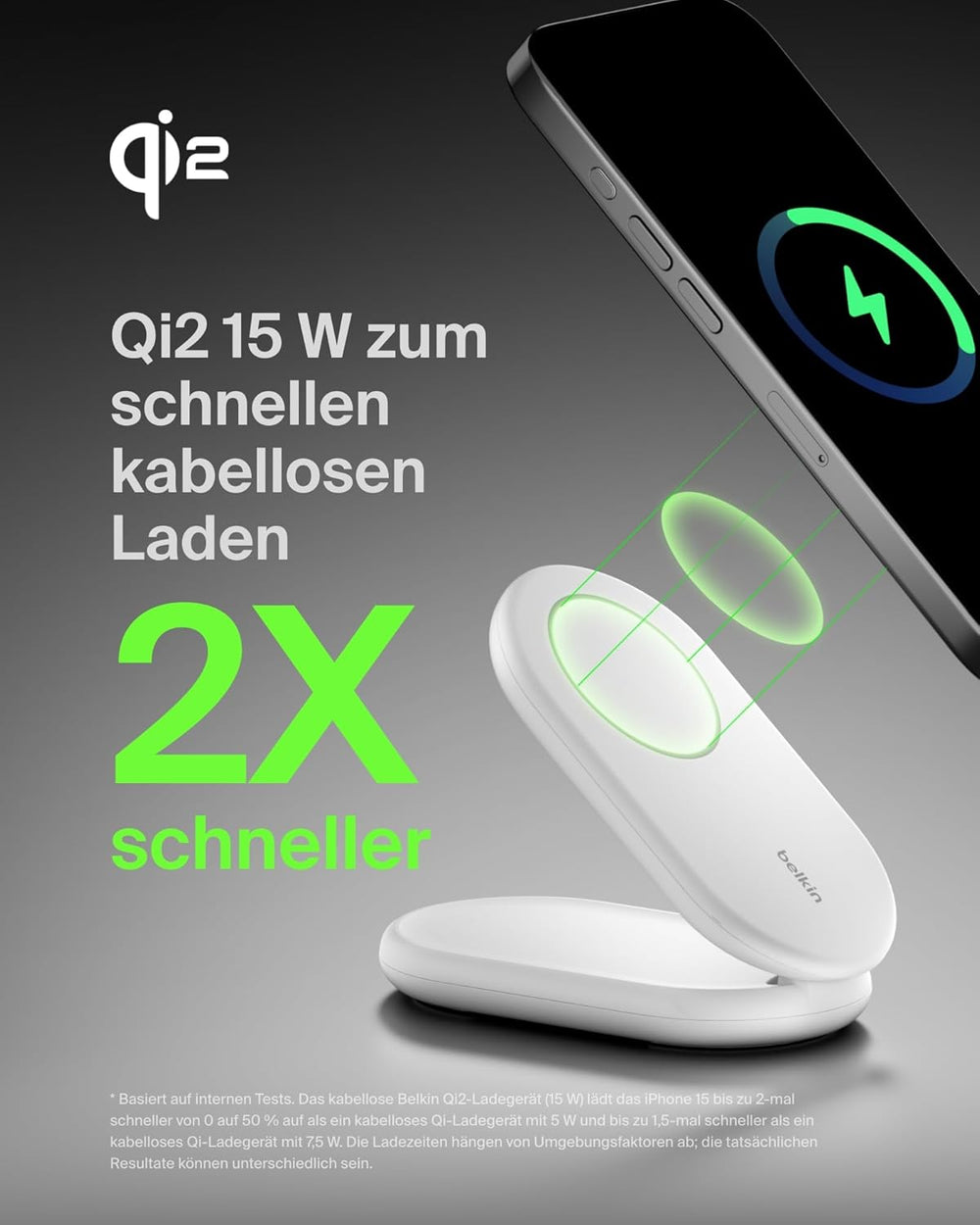 Belkin BoostCharge Magnetisches Einklappbares Kabelloses Ladegerät Qi2, 15 W, MagSafe-Kompatibles Sc