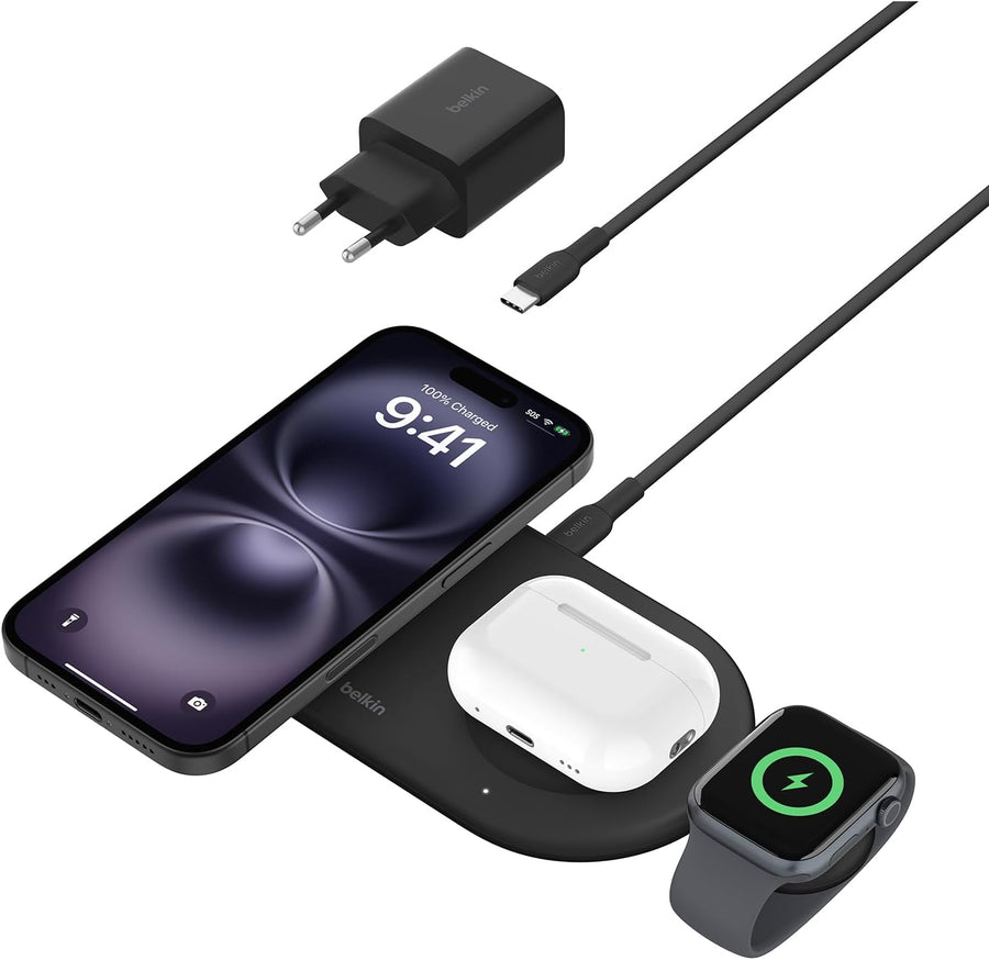 Belkin BoostCharge Pro drahtloses 3-in-1-Ladegerät mit MagSafe für iPhone 15, 14, 13, 12 + Apple Wat