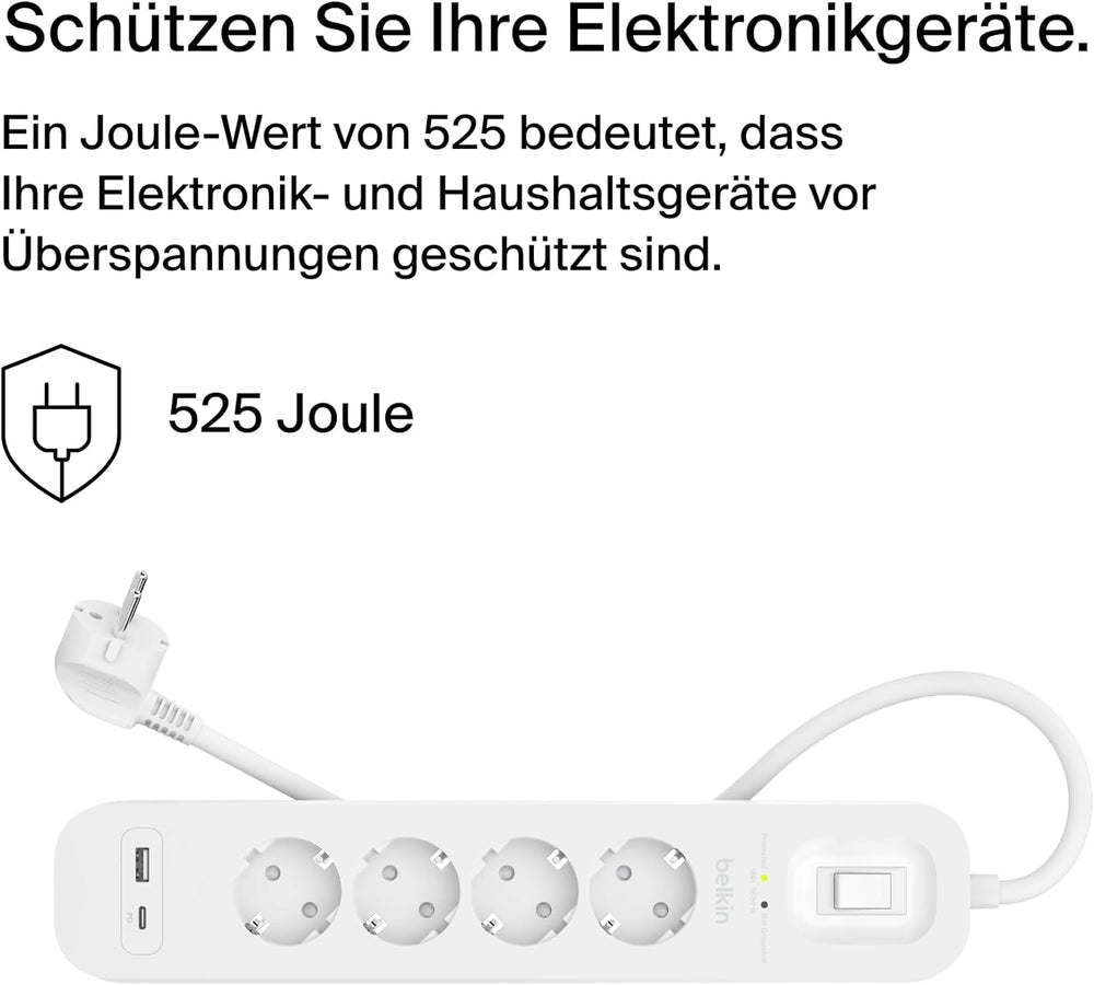 Belkin 4-Fach Steckdosenleiste mit Überspannungsschutz, Wandmontage, 4 Steckdosen, 2-m-Netzkabel, gr