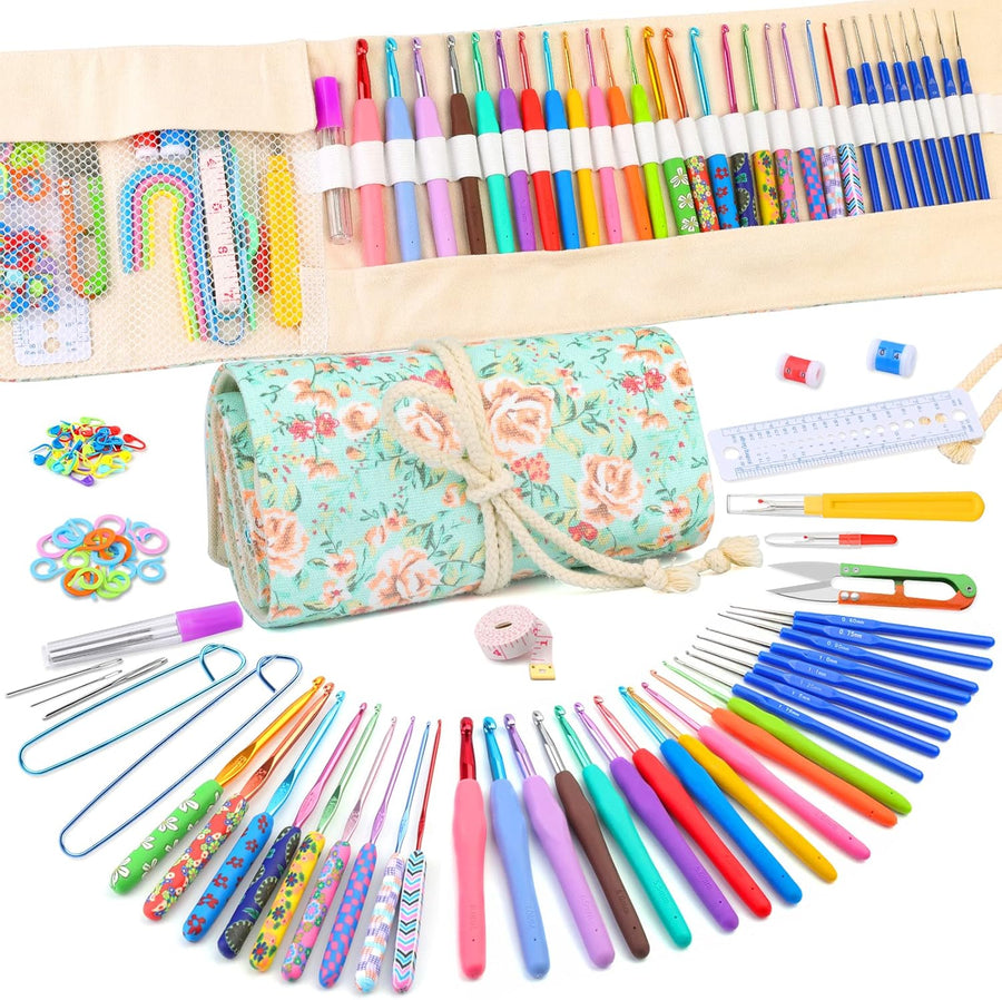 106 Stücke Häkelnadeln Set mit Aufbewahrungstasche, Weiche Griff Crochet Hooks Set, Ton Häkelnadeln,