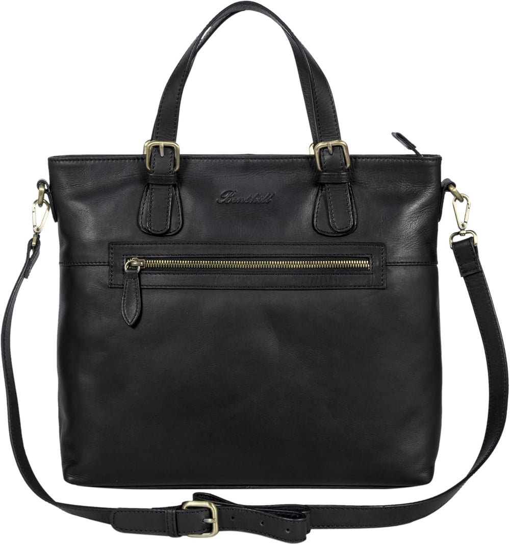 Benthill Damen Shopper Leder - Umhängetasche aus echtem Rindsleder - Handtasche mit Reissverschluss