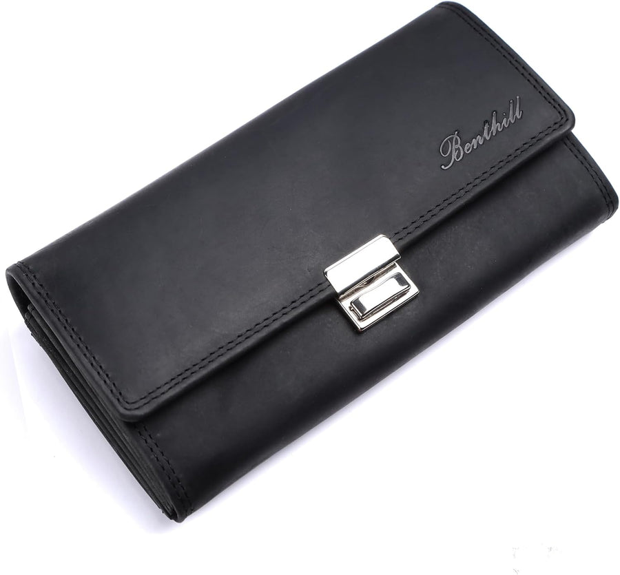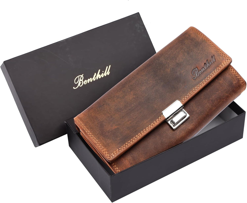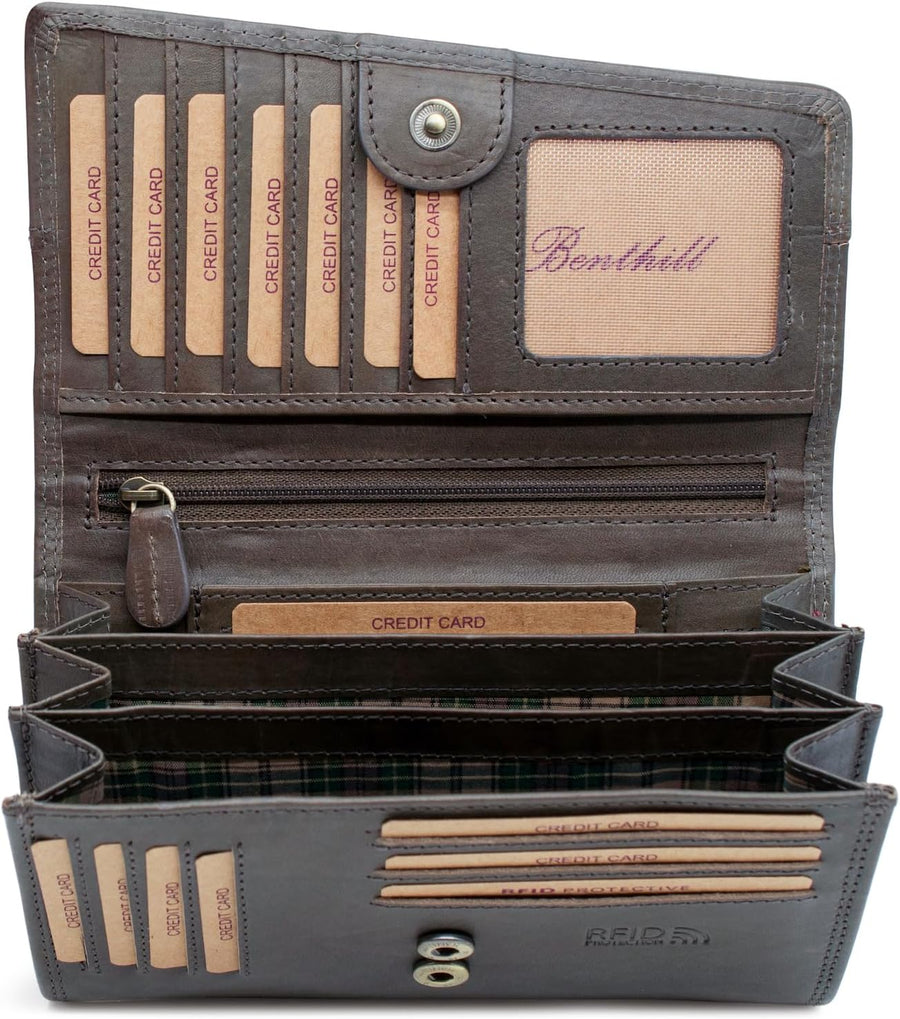 Benthill Geldbörse Damen Gross Echt Leder - RFID Portemonnaie Gross aus echtem Rindsleder - XXL Geld