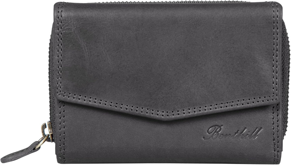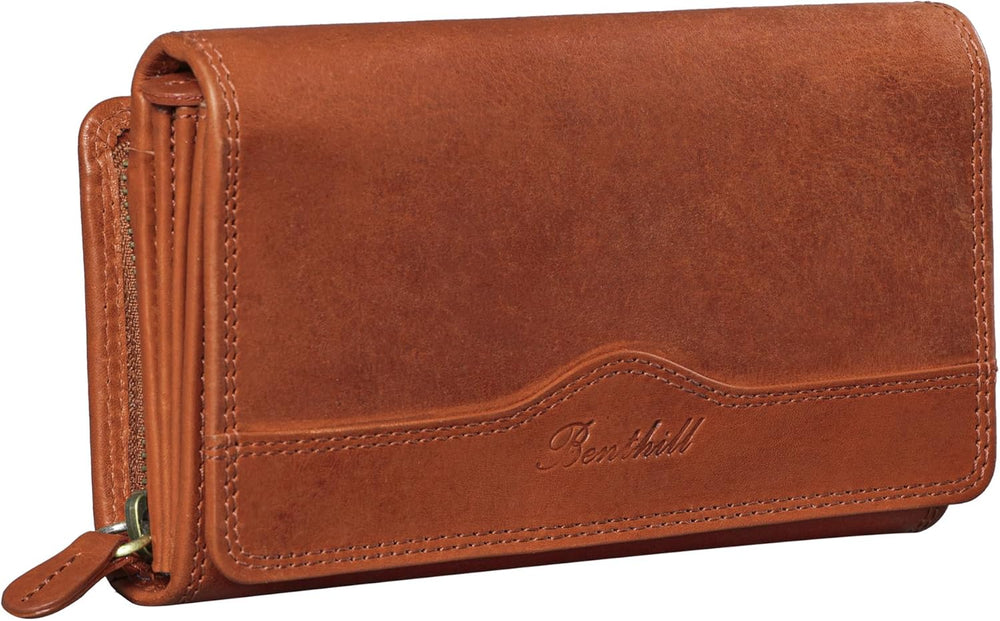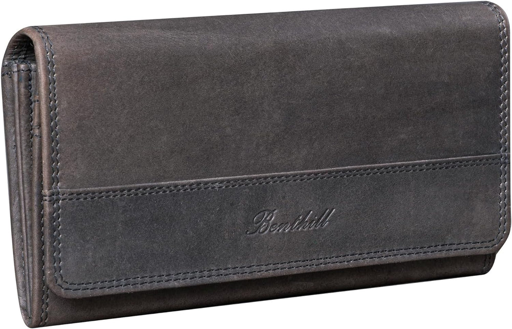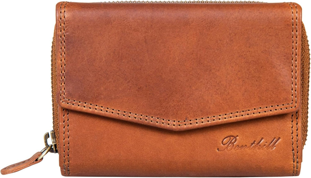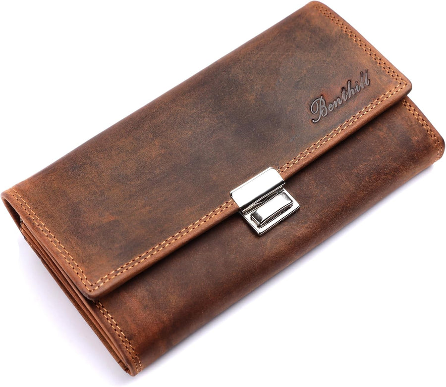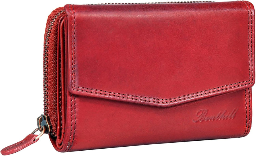 Benthill Portemonnaie Damen Leder - Echtleder Geldbörse - Vintage Portmonee - Kreditkartenetui - Mün