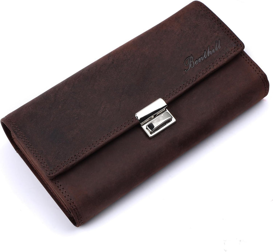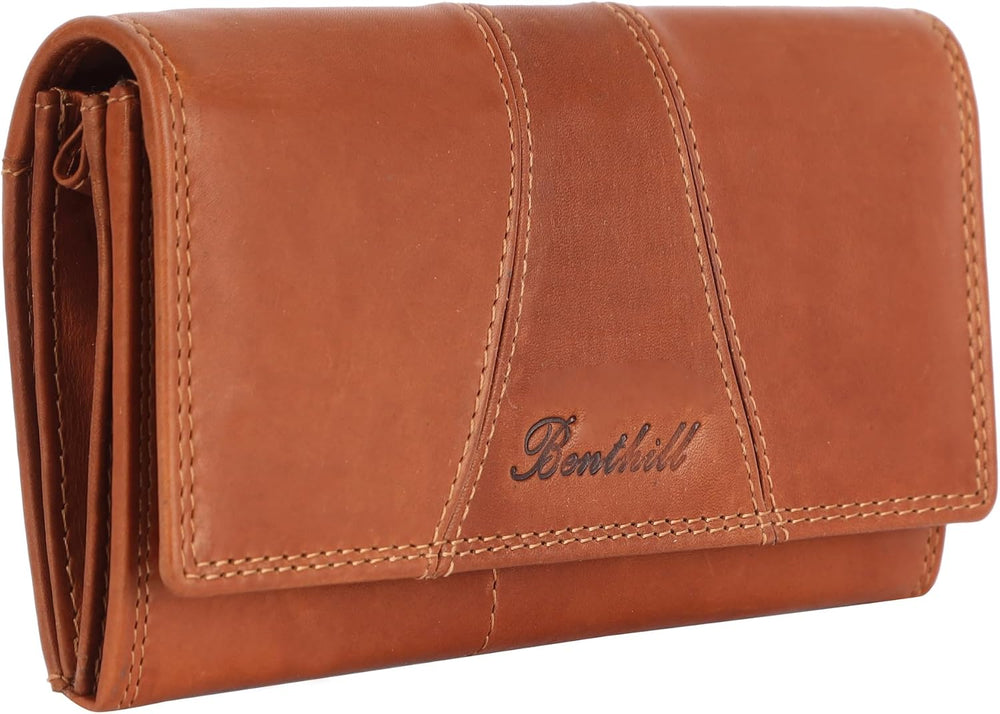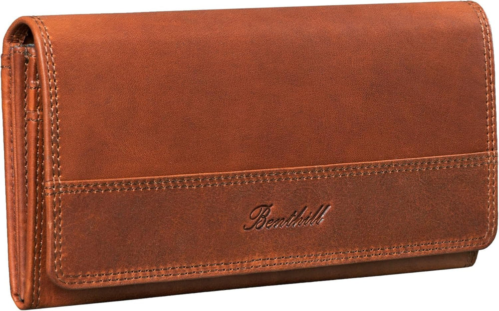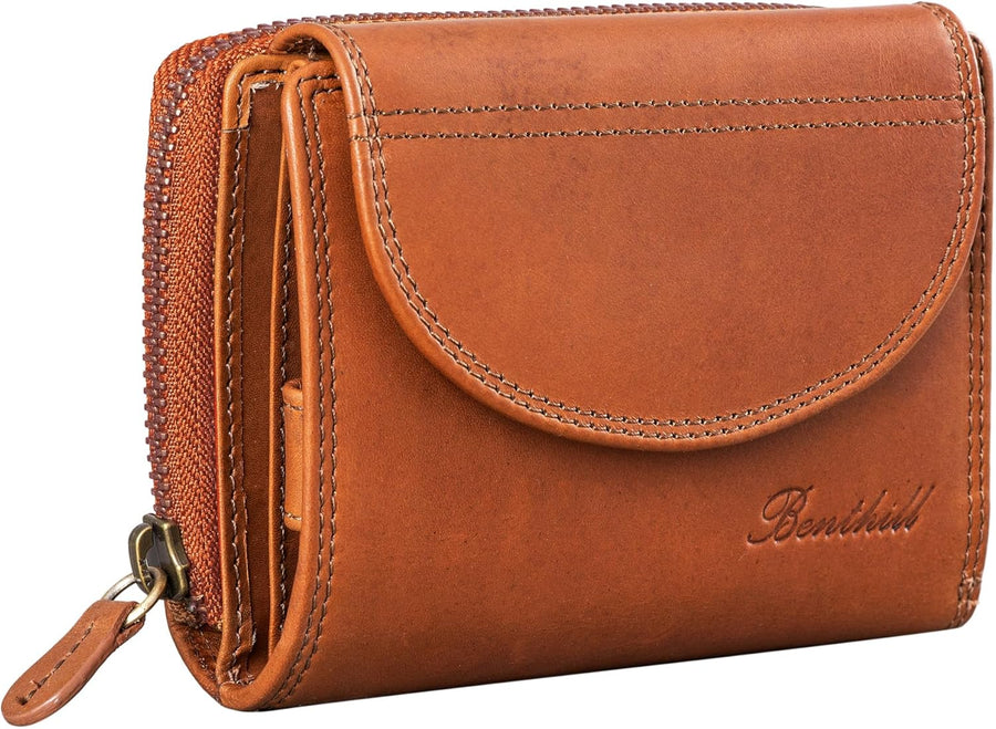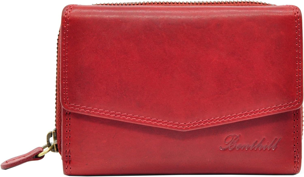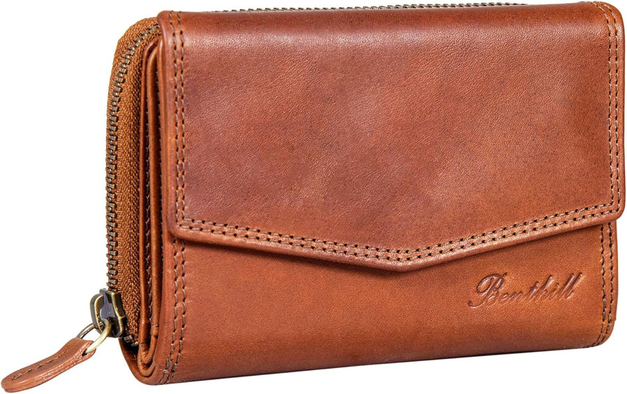 Benthill Portemonnaie Damen Leder - Echtleder Geldbörse - Vintage Portmonee - Kreditkartenetui - Mün