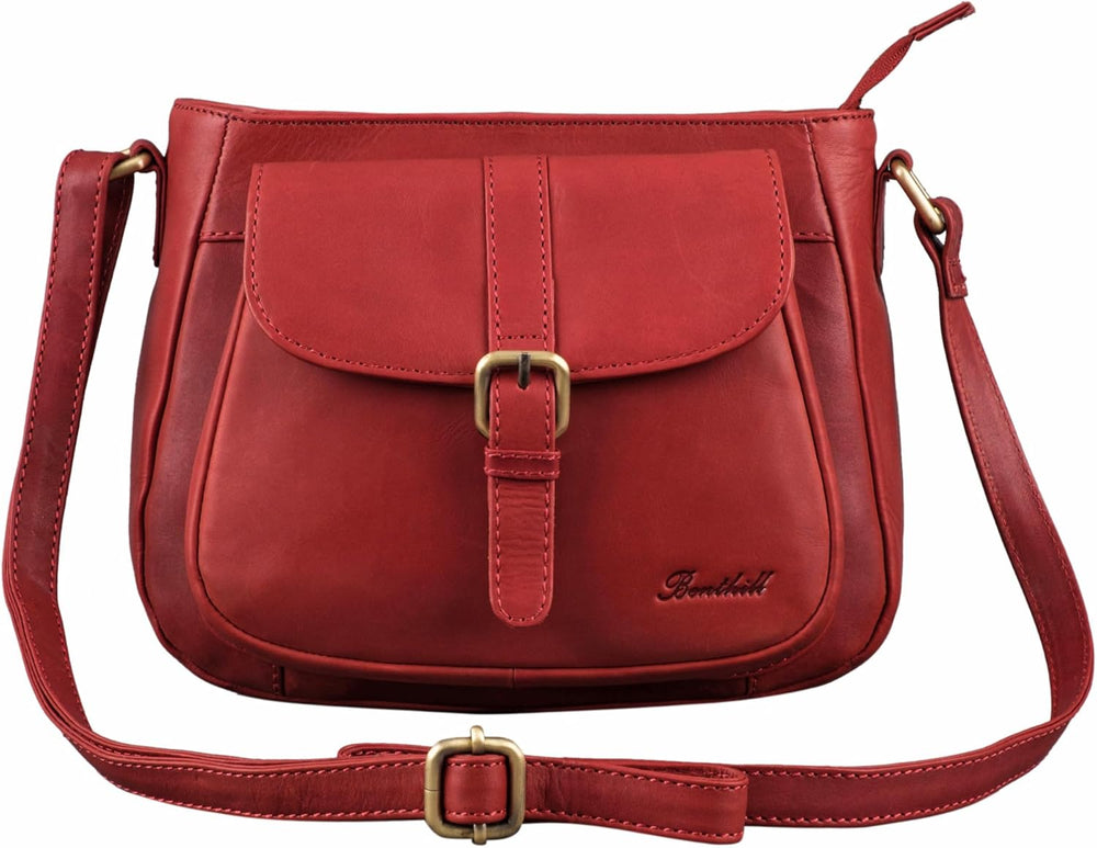Benthill Damen Tasche Leder - Handtasche aus echtem Rindsleder - Umhängetasche mit Reissverschluss -