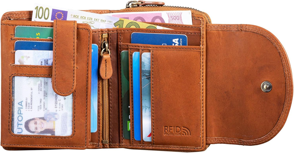 Benthill Geldbörse Damen Echt Leder | Portemonnaie Klein mit RFID Schutz | Kleiner Geldbeutel mit vi
