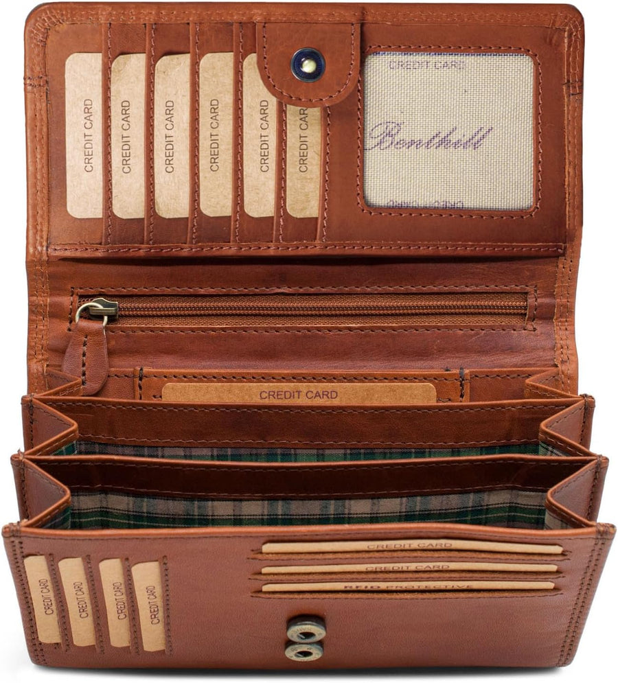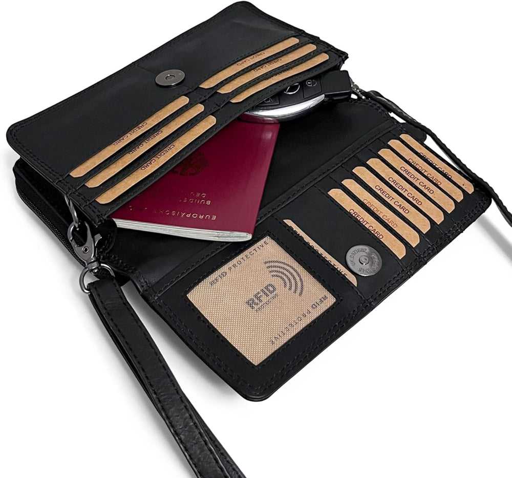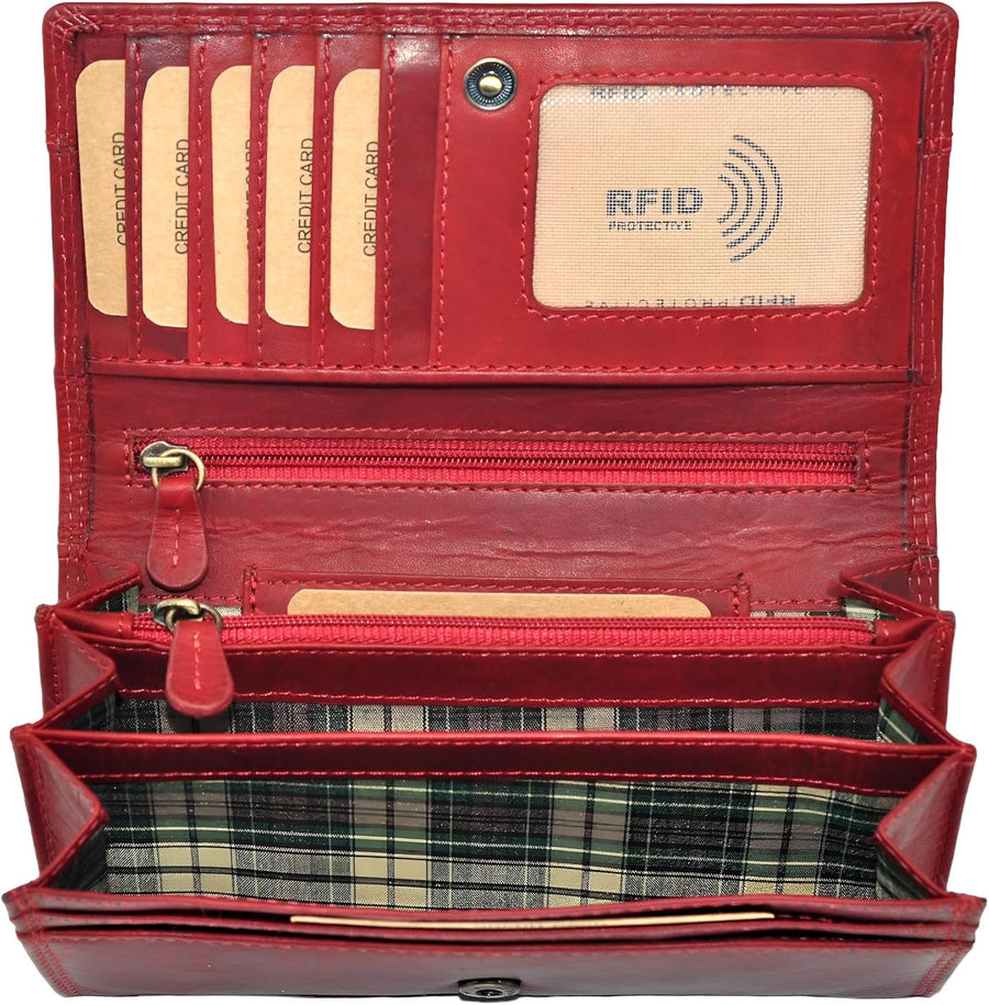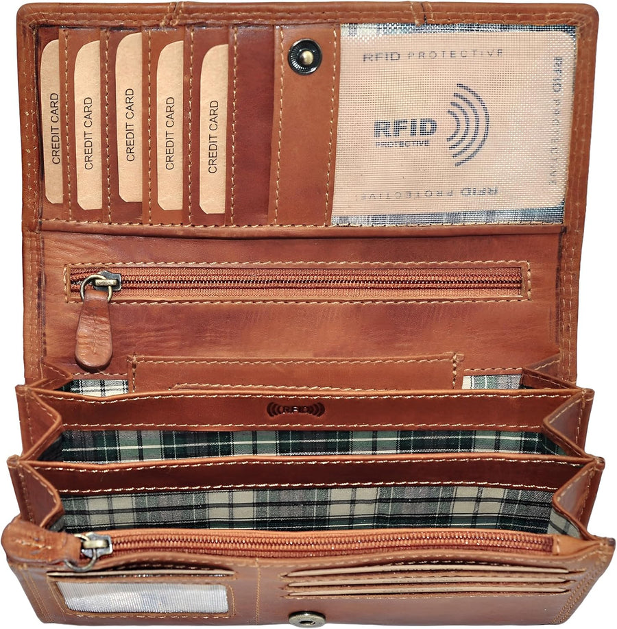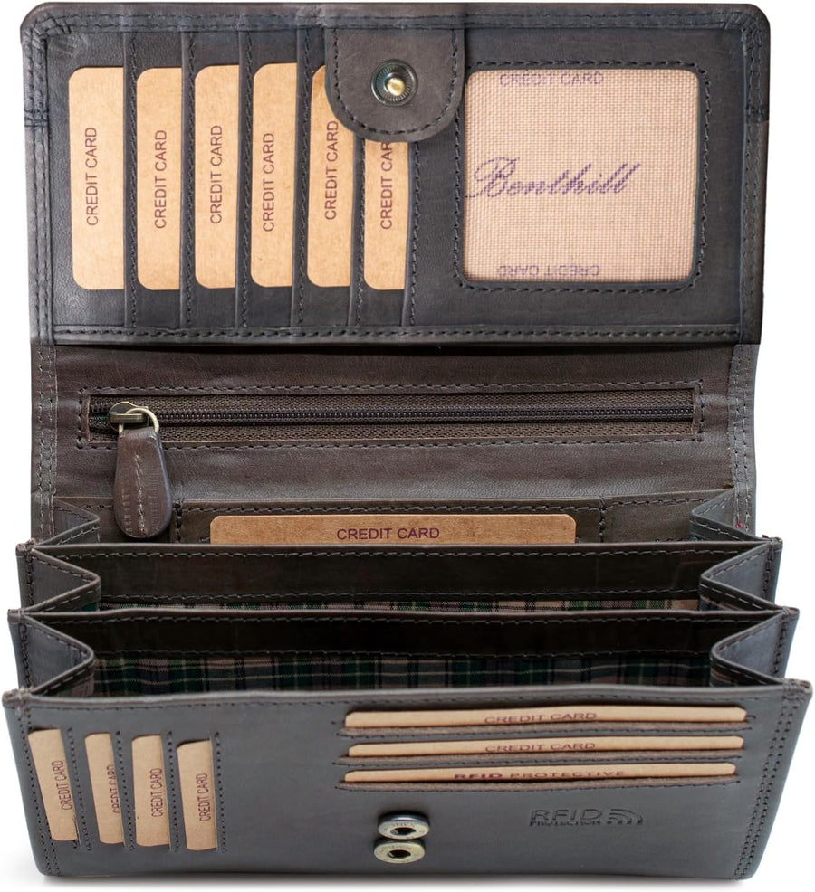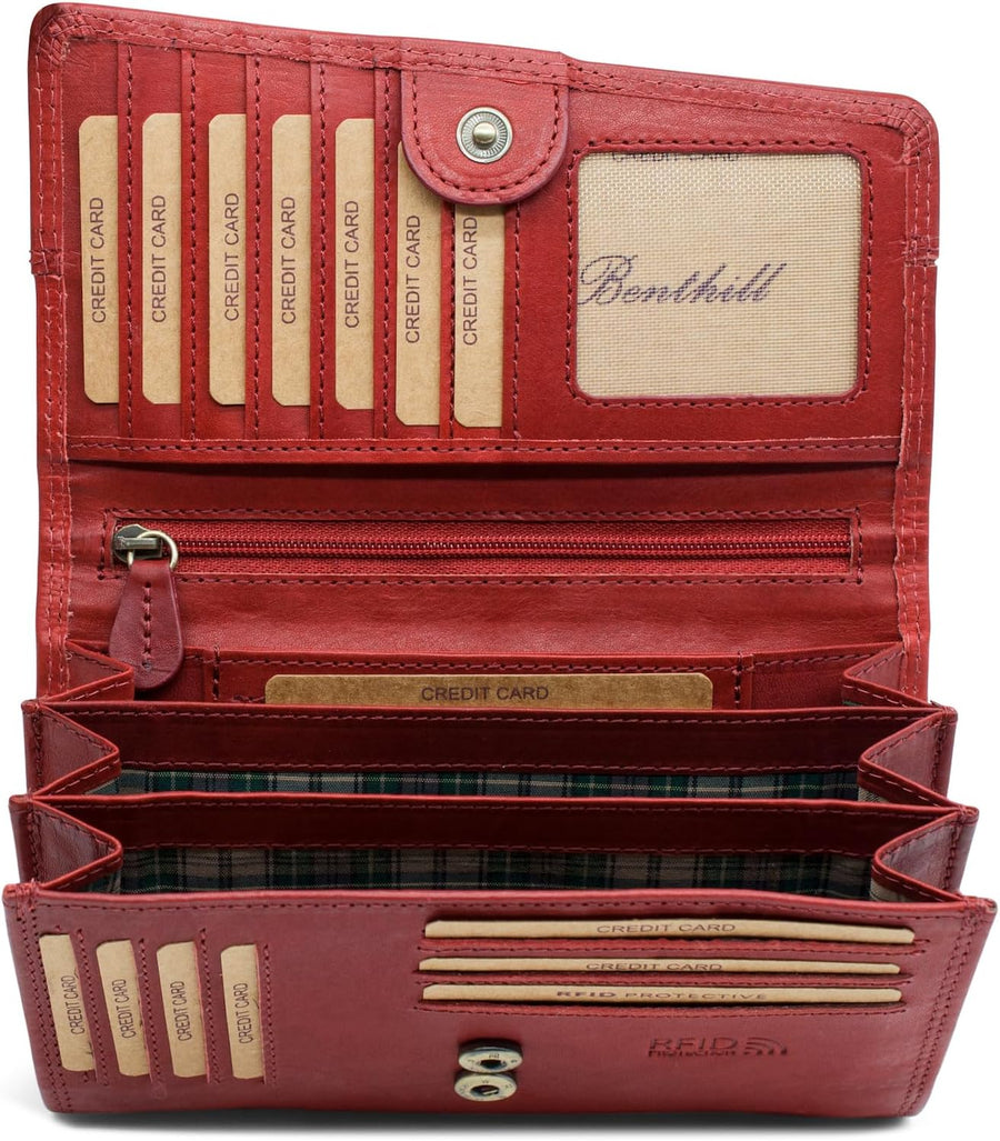 Benthill Lange Echt Leder Geldbörse für Damen | Damenbörse mit RFID Schutz | Grosses Portemonnaie mi