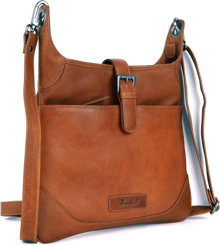 Benthill Echt Leder Umhängetasche | Damen Schultertasche aus Rindsleder | Schmale Vintage Damen Hand