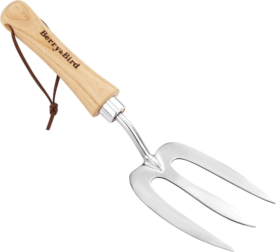 Berry&Bird Classic Blumengabel 30,7 cm - Grabegabel aus hochwertigem Edelstahl mit kurzem Holzgriff,
